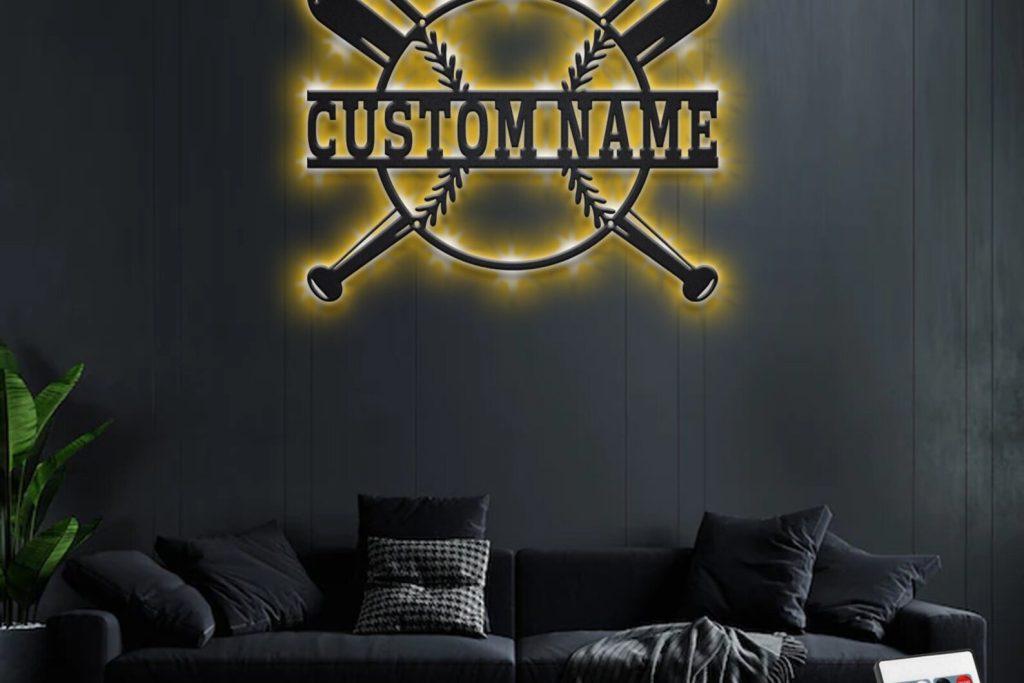 Be the first to review “Custom Baseball Bat Metal Wall Art with LED Light, Personalized Name Sign”