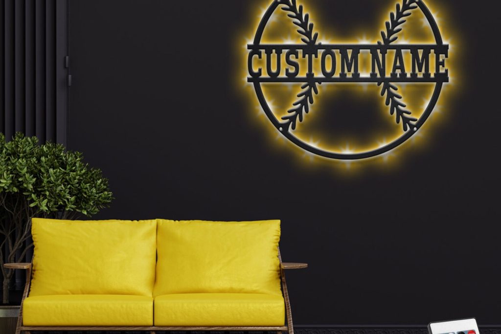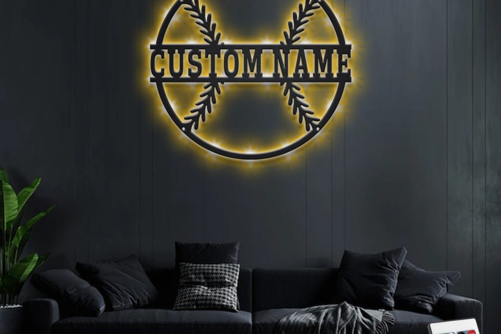 Custom Baseball Metal Wall Art with LED Light
