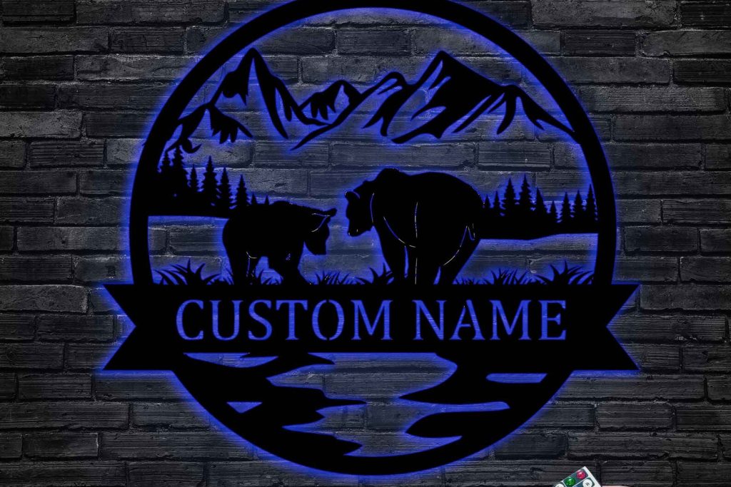The unique Bear Mountain Tree Metal Wall Art Sign brings nature and warmth to your walls. Personalize it with your own name to create a one-of-a-kind home decor.