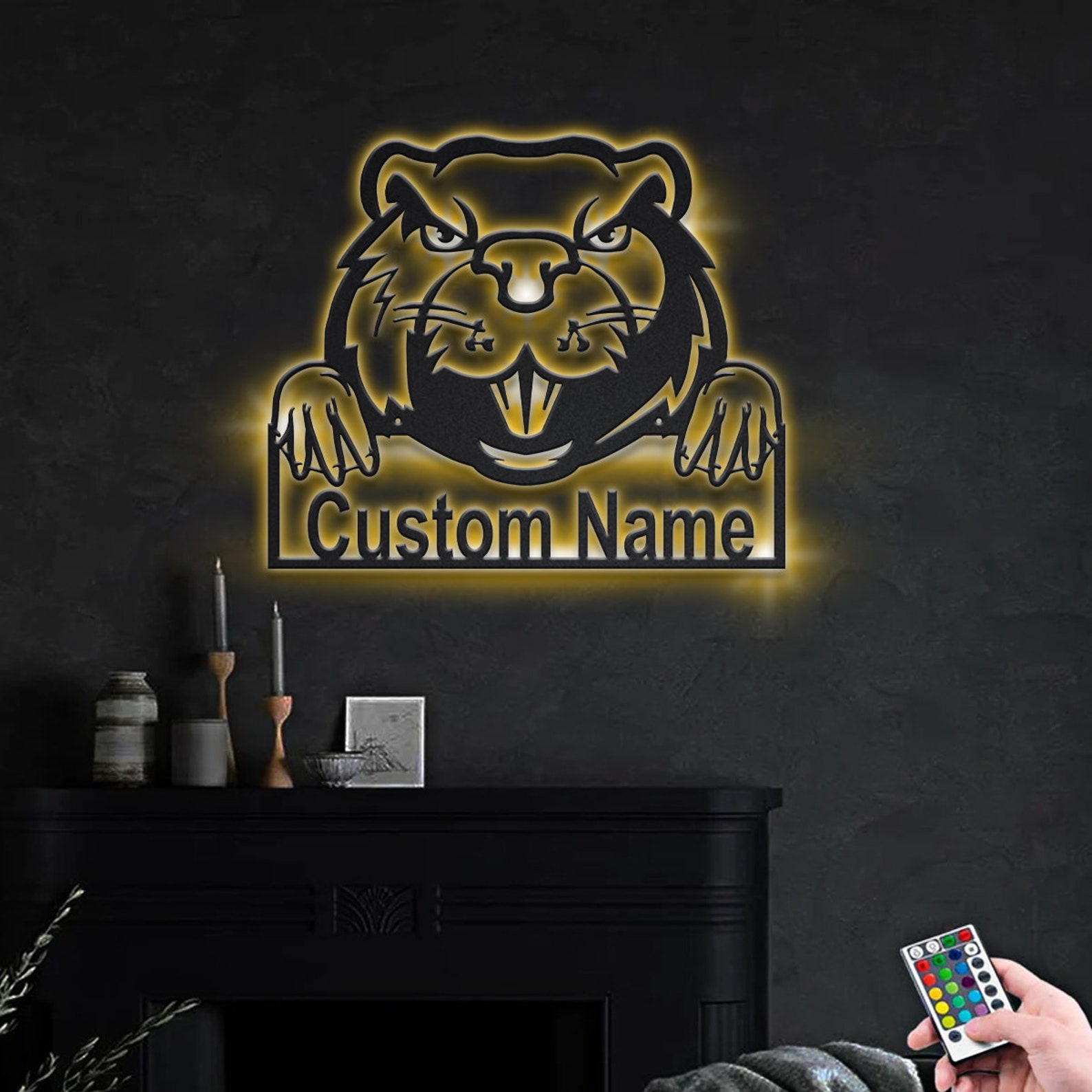 Be the first to review “Custom Beaver Metal Wall Art with LED Lights”
