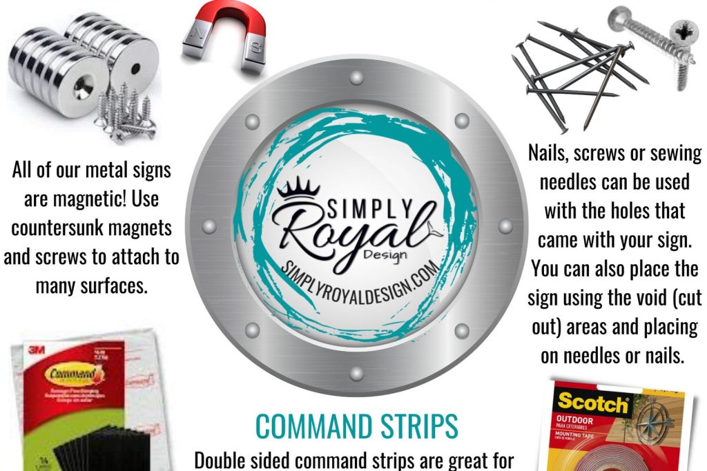 Most of our pieces are hung with small needles or nails using the existing void spaces as anchor points. This way the art hangs flush with the wall and doesn9;t take away from the design. Our customers have also had a lot of success using double sided command tape. Our metal designs are also magnetic! Small holes can be added for no extra charge. Please specify in the notes at checkout if you want this option. Hanging hardware is not incl. We also sell matching powder coated screws for a flawless look. See the link below to purchase.