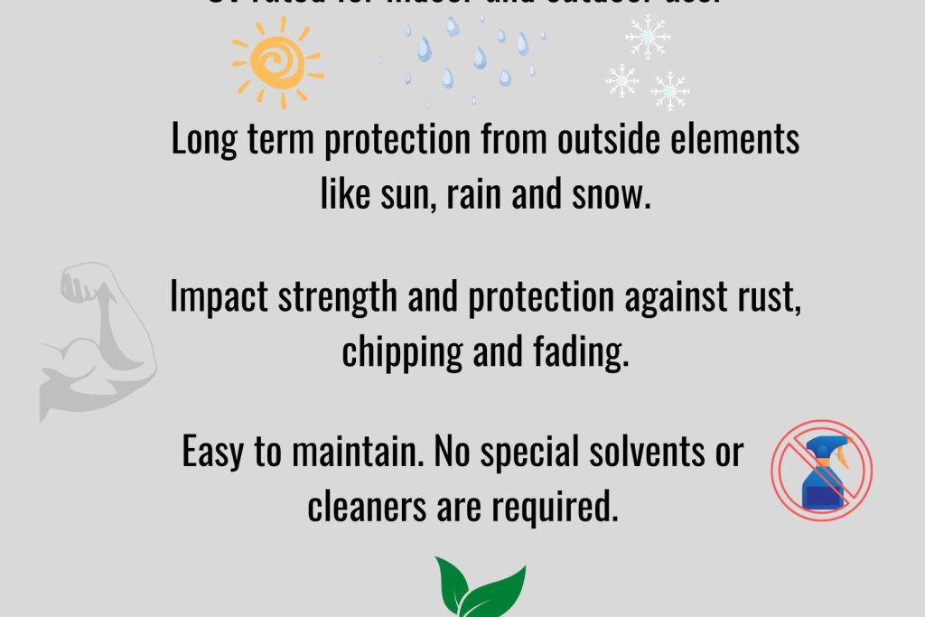 We use top quality materials and our powder coat is rated for both indoor and outdoor use. No maintenance required!