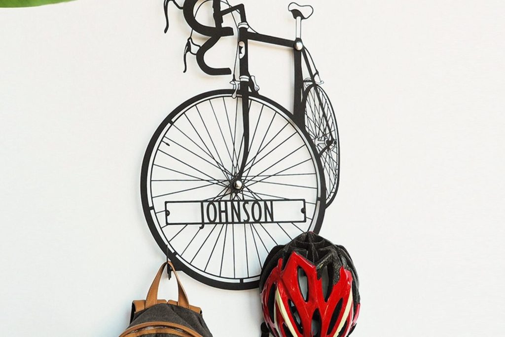 Custom Metal Bike Helmet Holder, Cycling Gift for Men, Fathers Day Gift, Bicycle Gift, Personalized Gift for Cyclist, Bicycle Wall Art