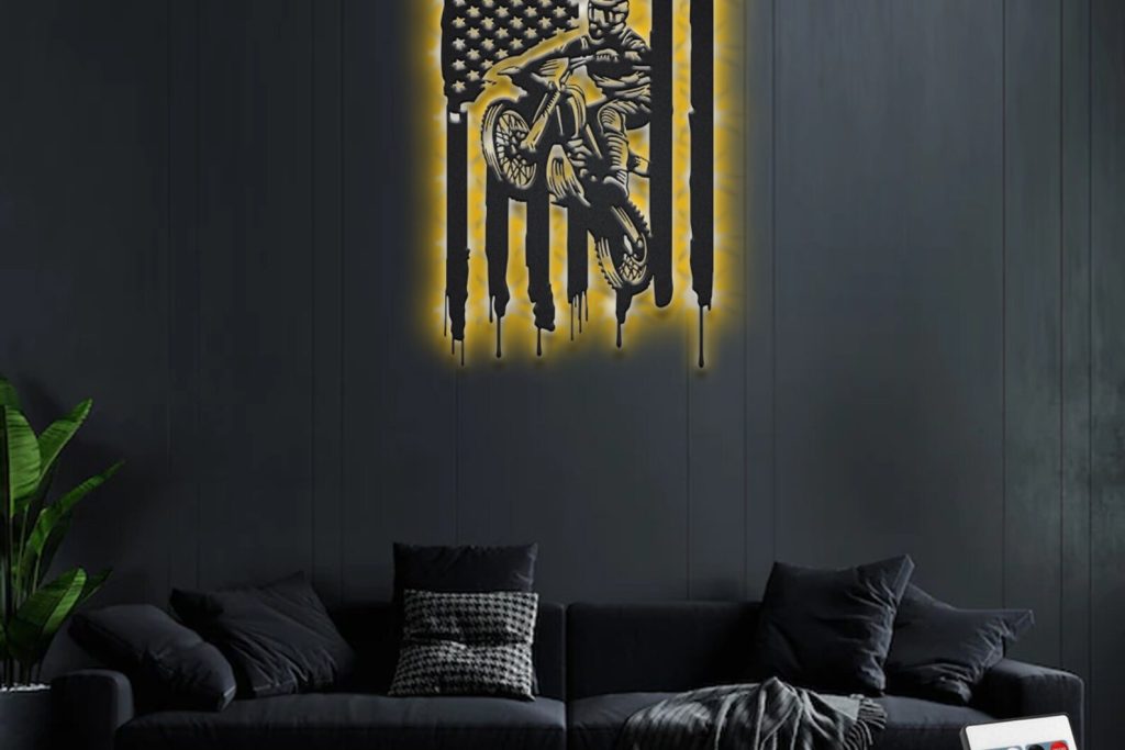Be the first to review “Custom Biker Metal Wall Art with LED Light, Personalized Name Sign”