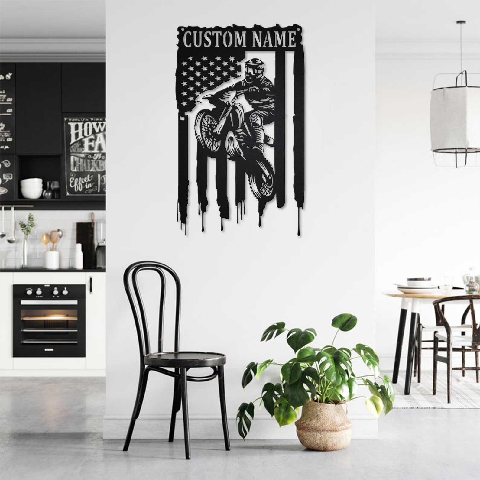 Custom Biker Metal Wall Art with LED Light, Personalized Name Sign