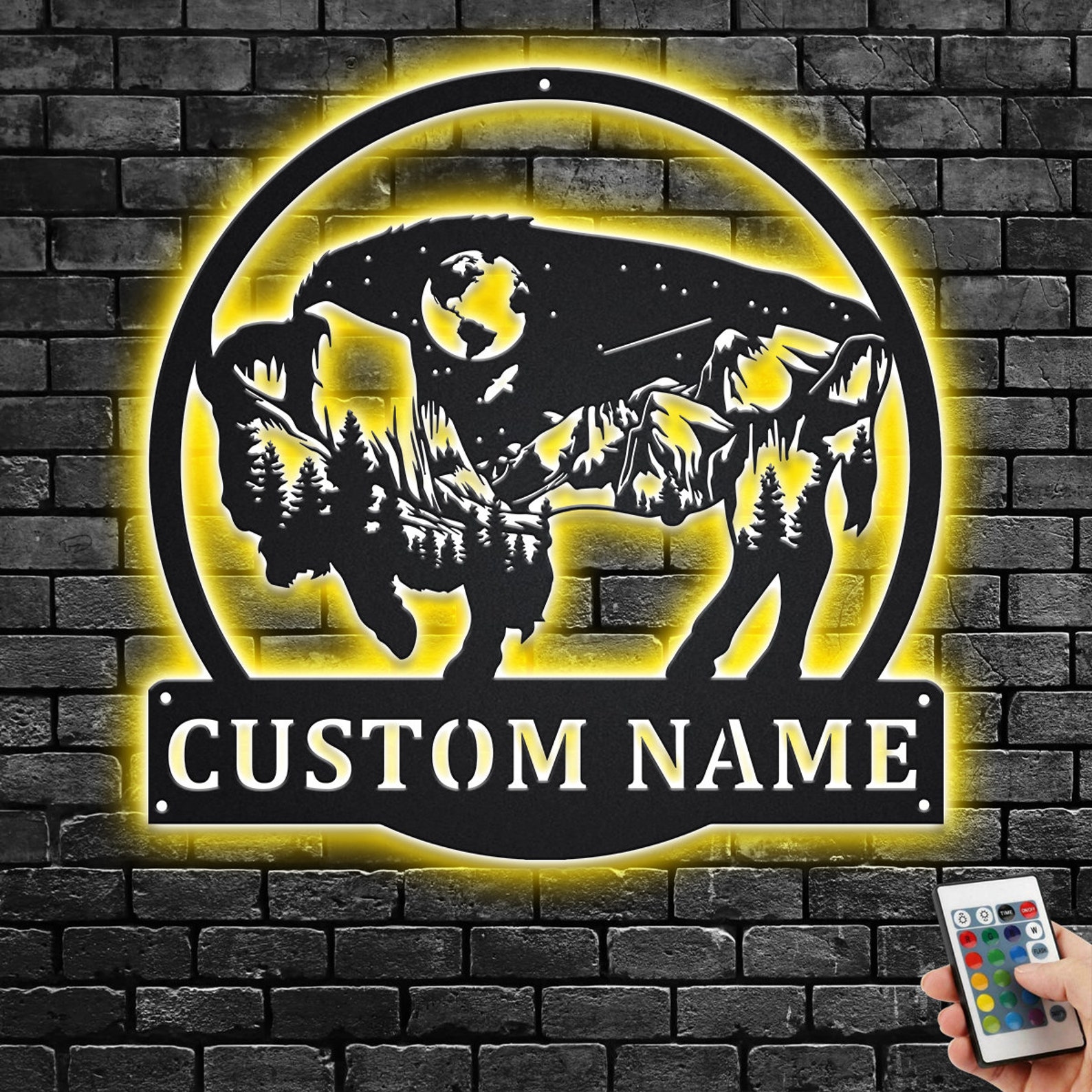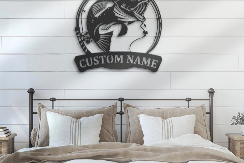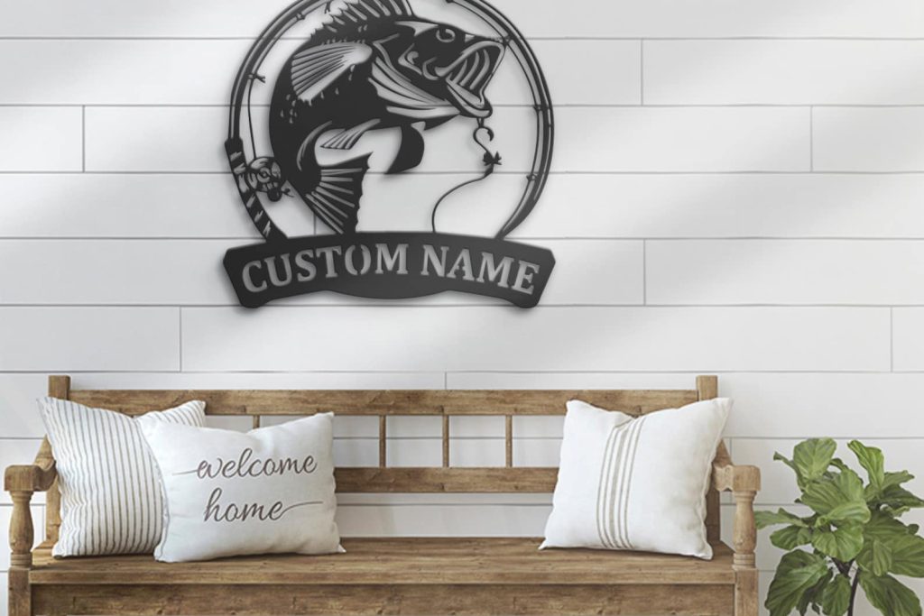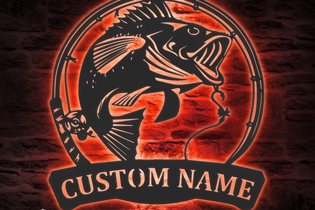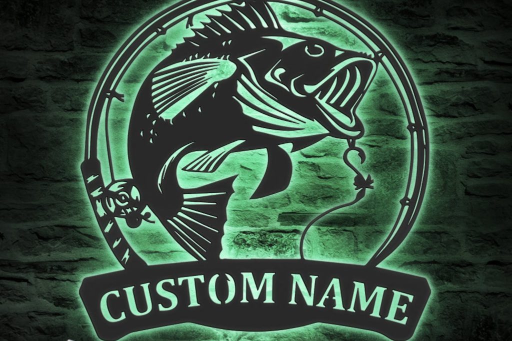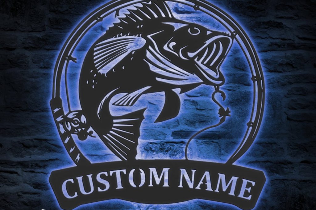 Custom Black Sea Bass LED Metal Art – Personalized Fisher Name Sign