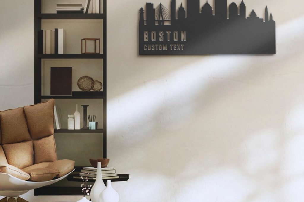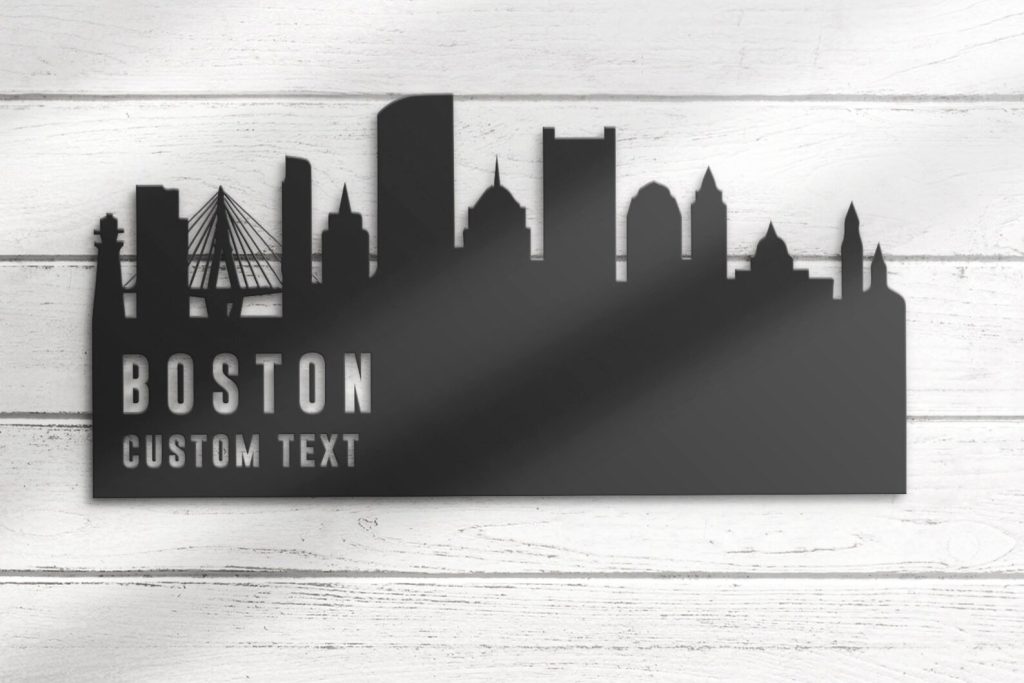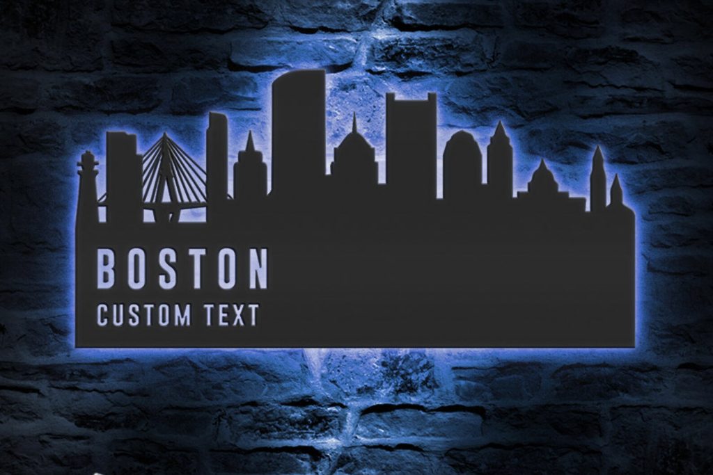 Custom Boston Skyline Metal Wall Art with LED & Name