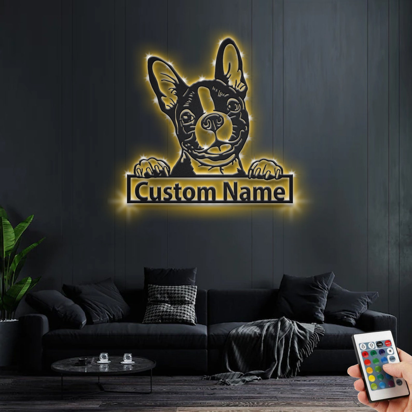 Custom Boston Terrier LED Metal Art – Dog Room Decor