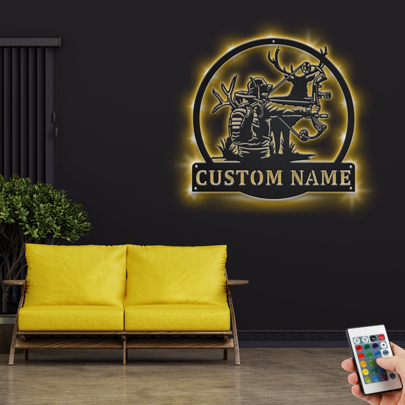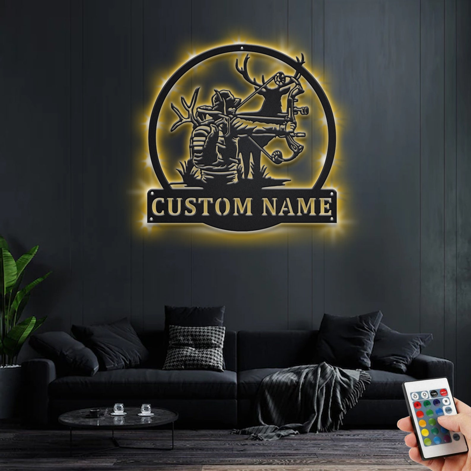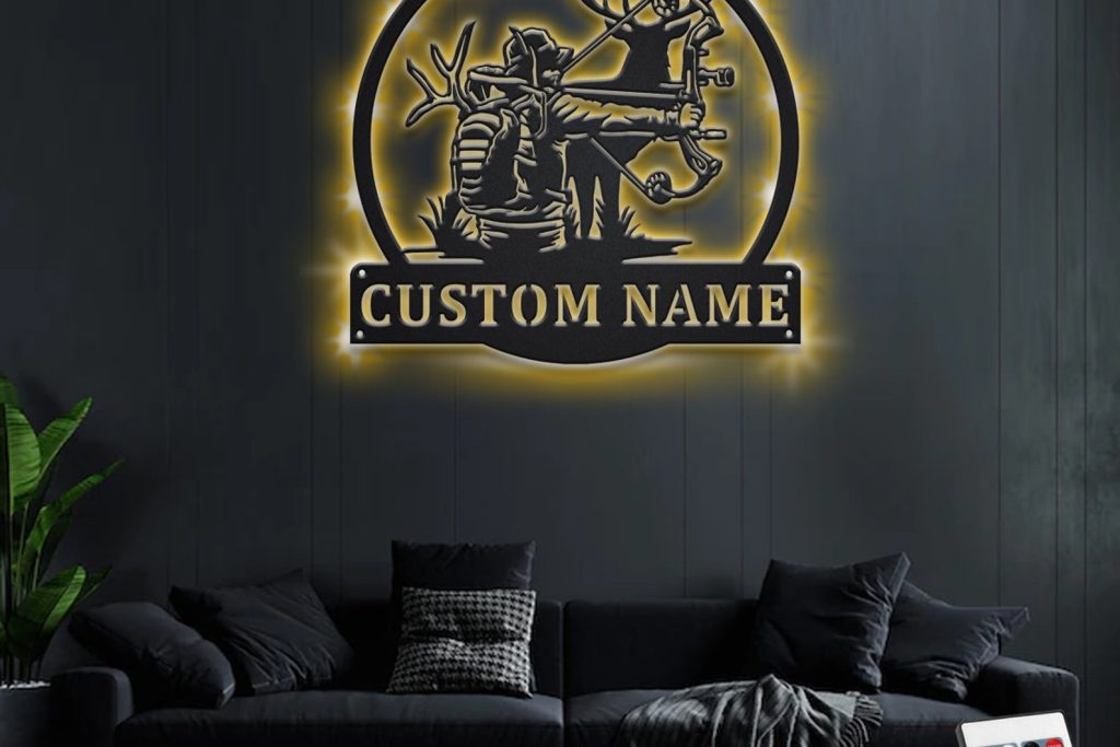 Custom Bow Hunting Metal Wall Art with LED & Name