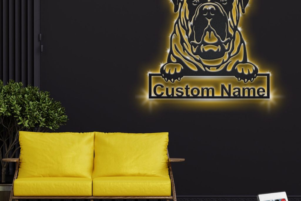 Custom Bullmastiff Metal Sign with LED – Room Decoration