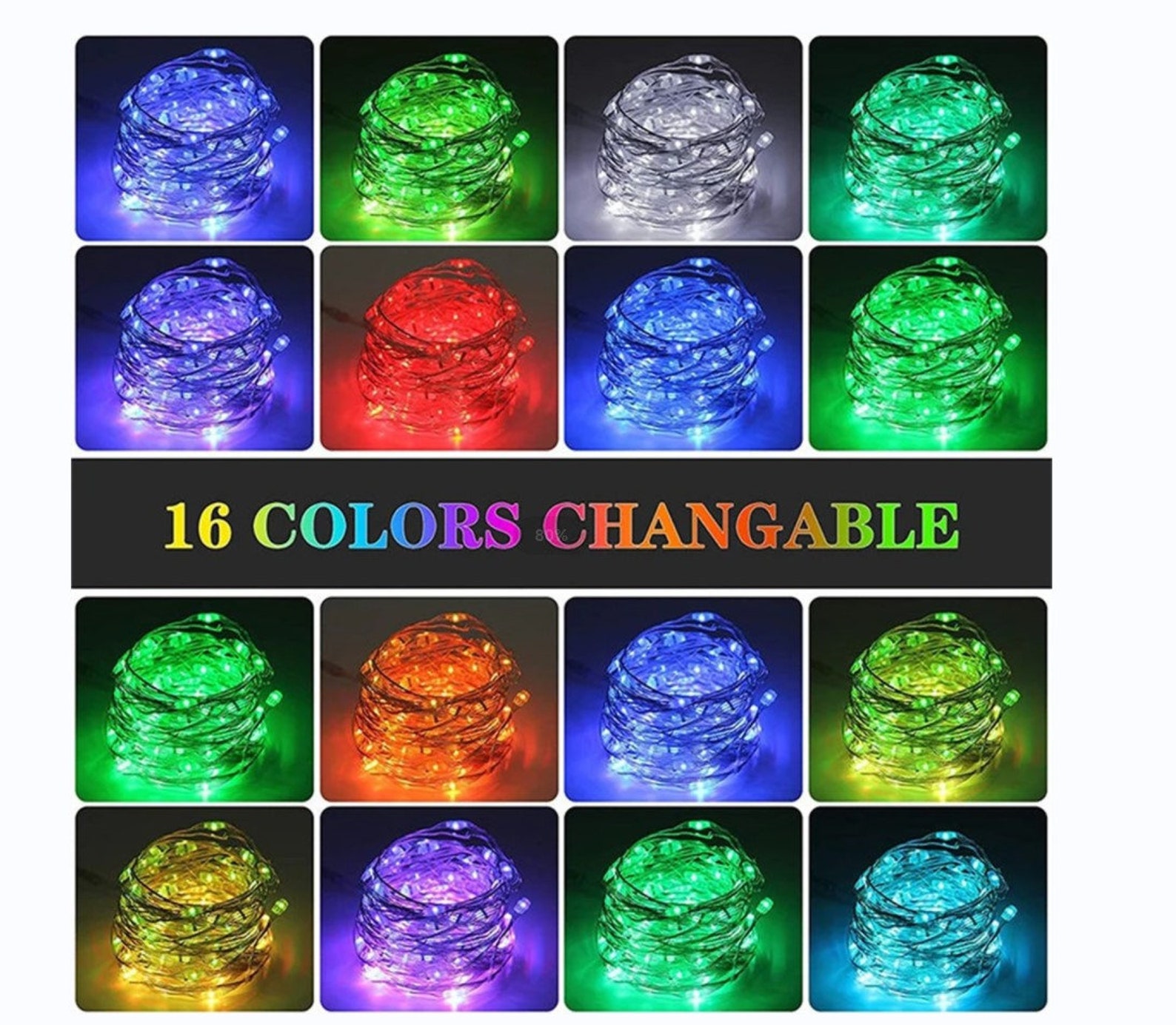 Remote control. You can use the remote control to turn the lights on and off, change the color to one of 16 vibrant colors, adjust the brightness, cycle through the various colors, and set the timer for 6 hours.