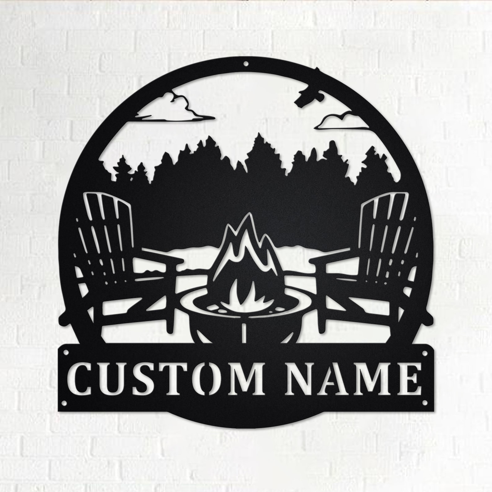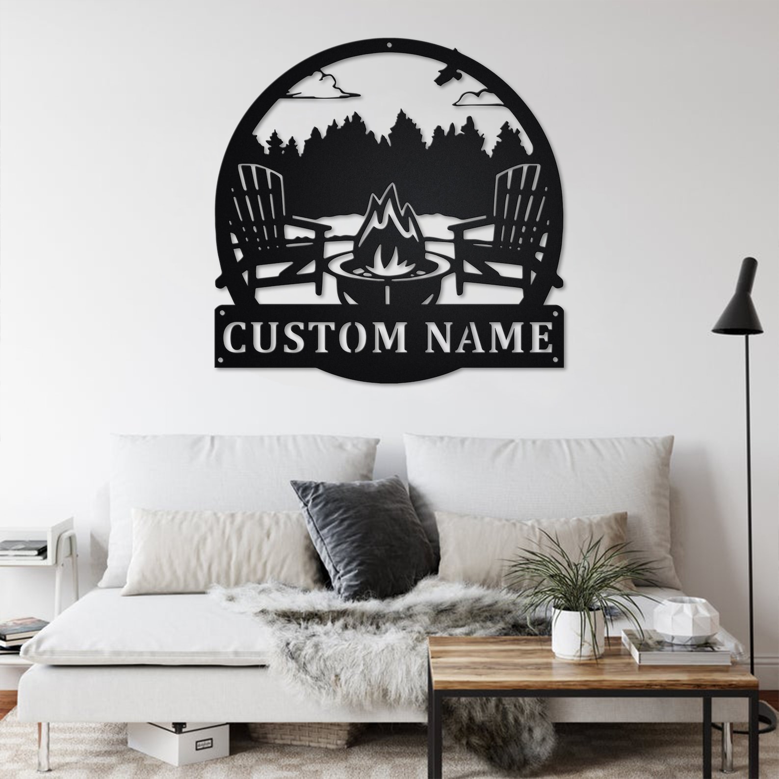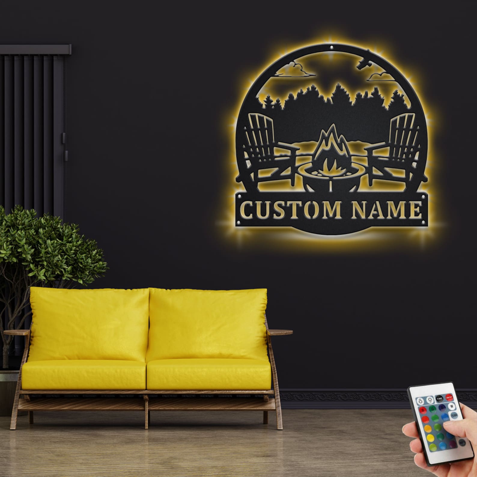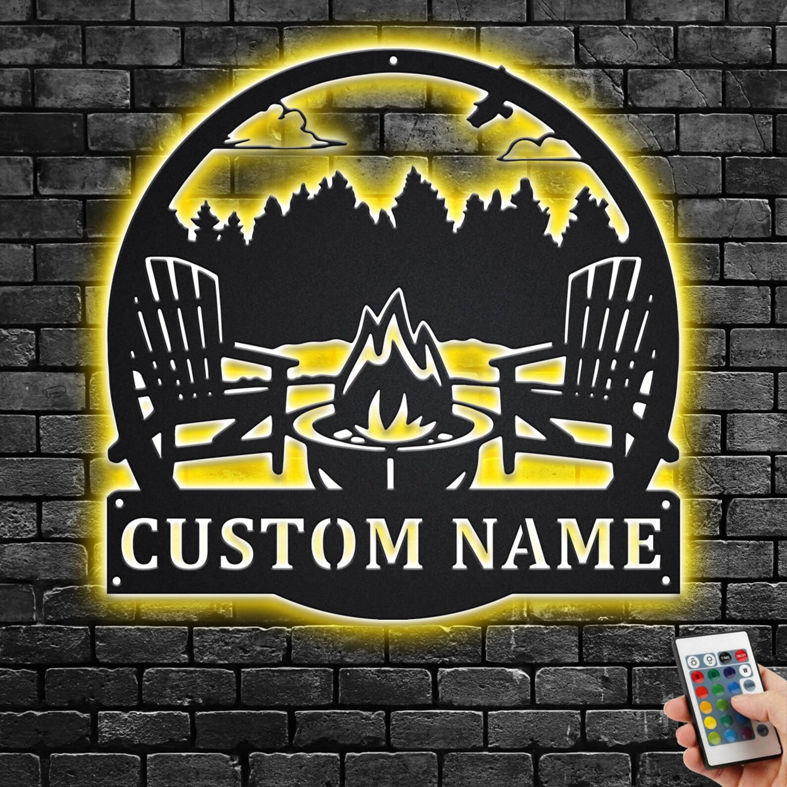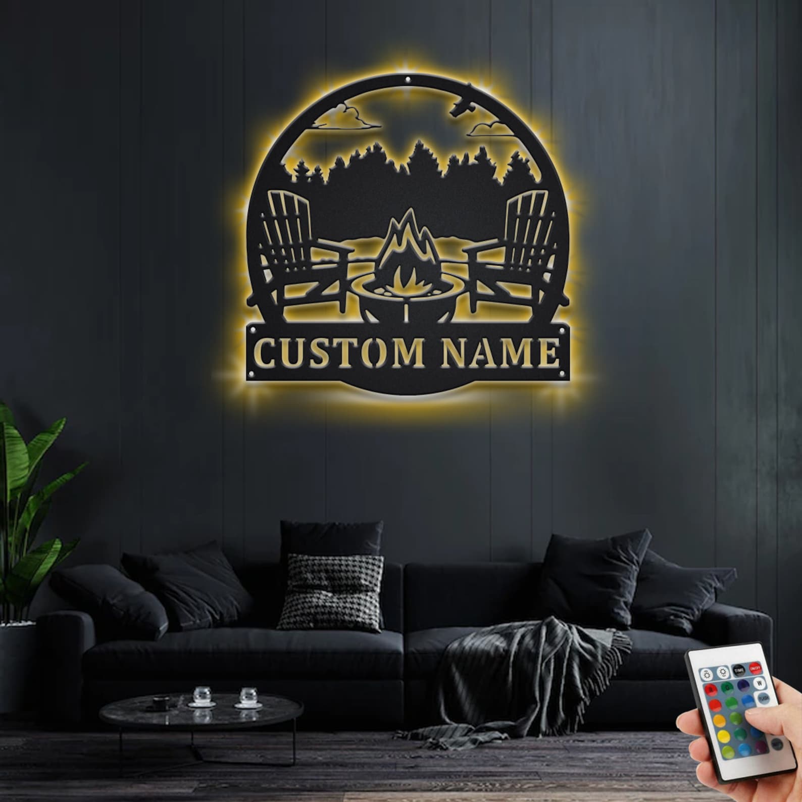 Custom Campfire Metal Wall Art – LED Light, Personalized