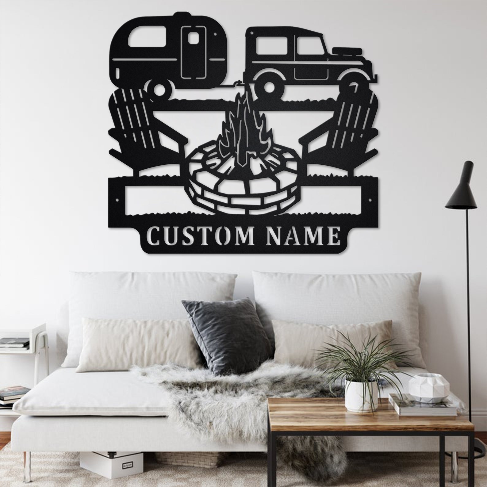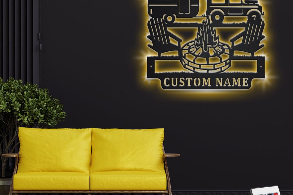 Custom Camping Car Metal Wall Art – LED Light, Personalized