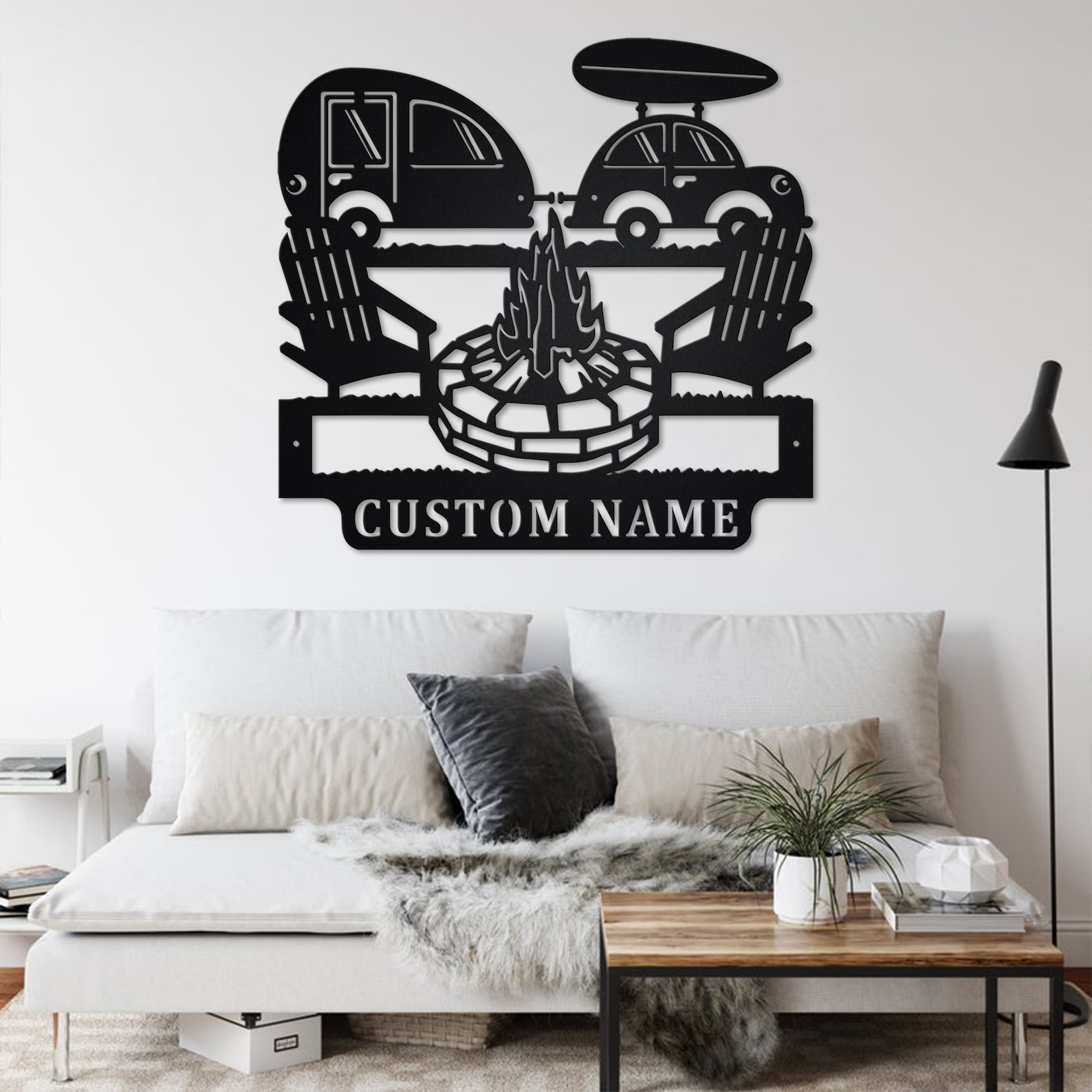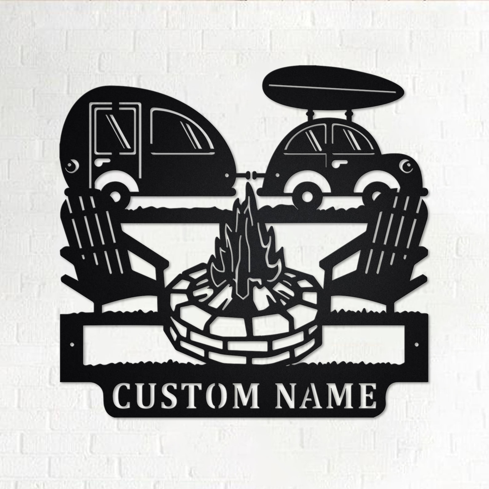 Custom Camping Car Metal Wall Art – LED Light, Personalized