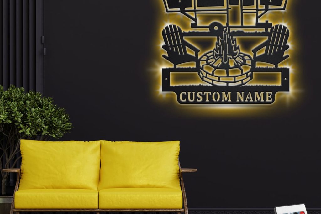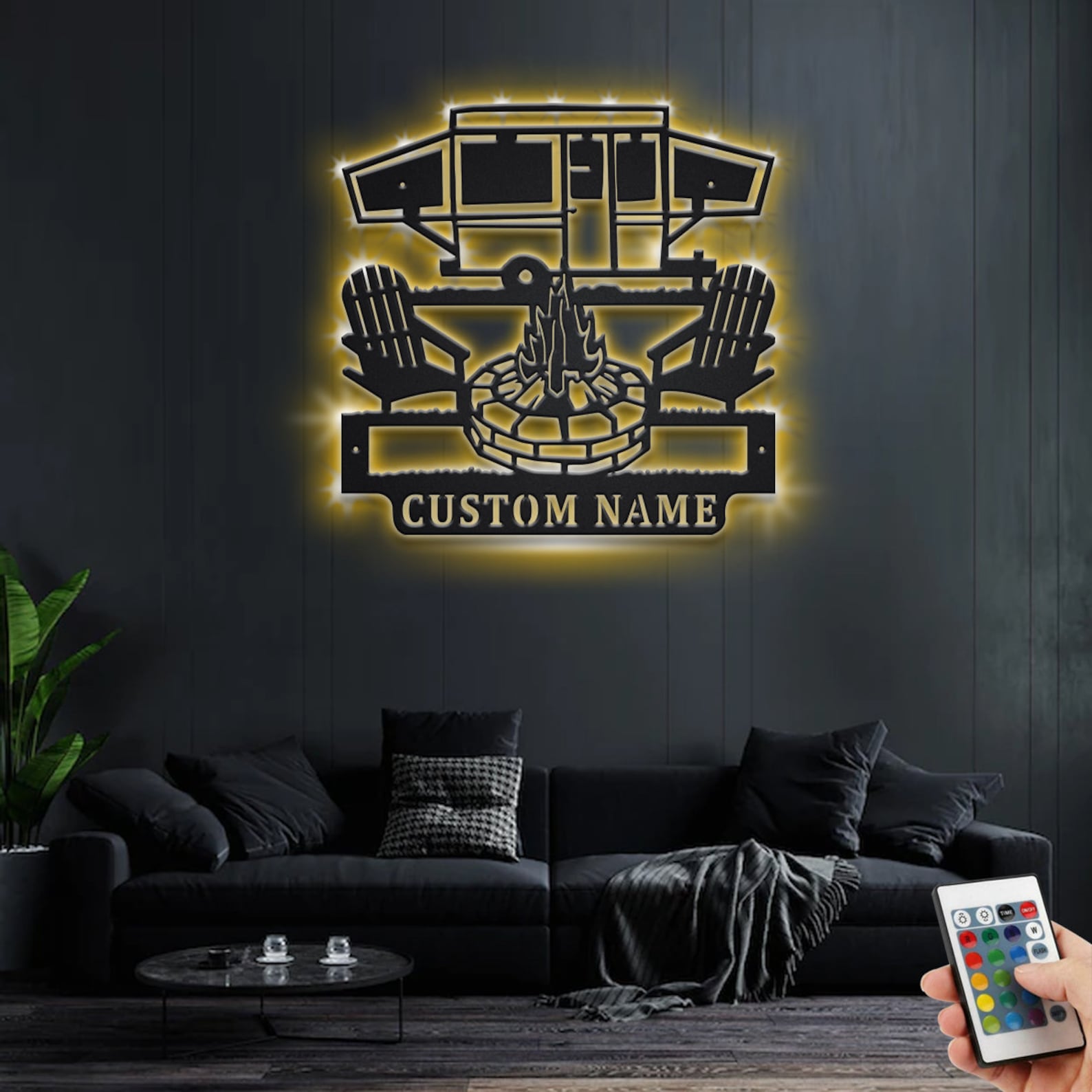Custom Camping Car Metal Wall Art – LED Light, Personalized