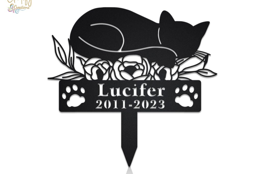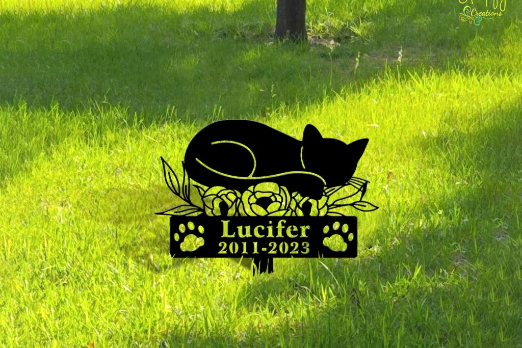 Custom Cat Memorial Metal Stake – Spring Cat Design