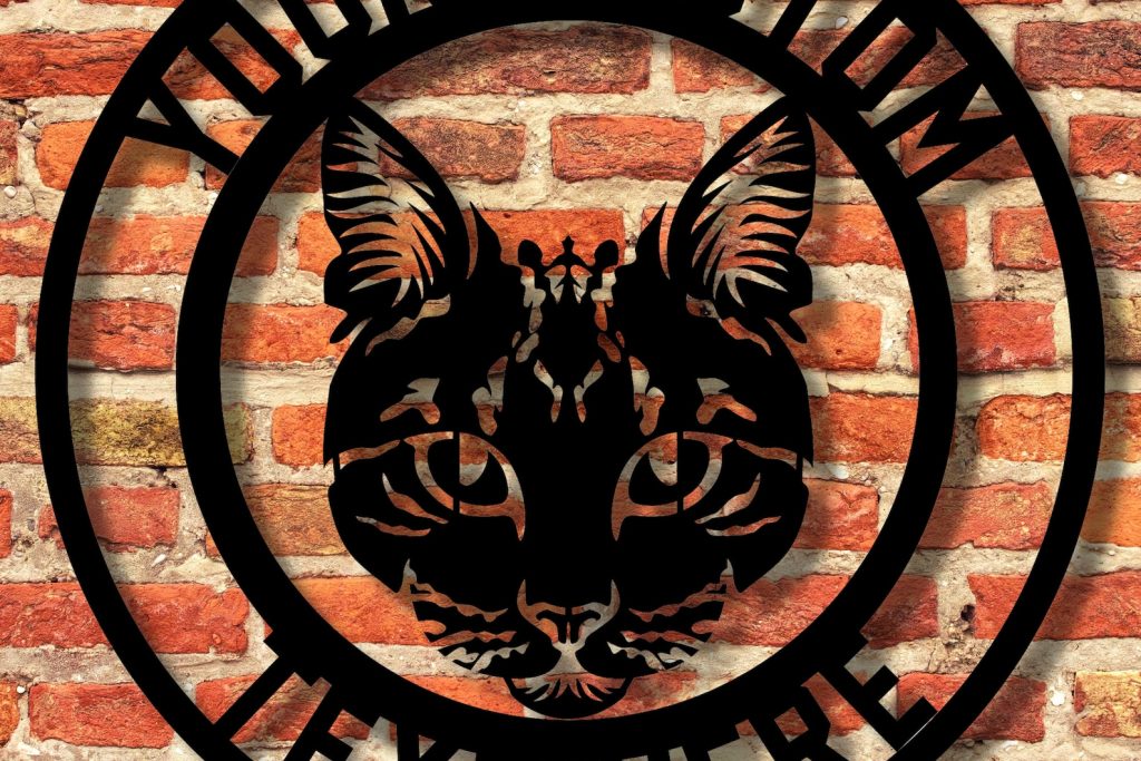 Our Personalized Metal Cat Signs can be customized with any text. Each Metal sign is laser cut with the top of the line laser technology to ensure precise detail of design! Each sign is powder coated to give a smooth finish and long lasting durability! Celebrate your furry friend with our custom metal dog sign! Personalize it with your pet9;s name and display it proudly in your home or garden. Made from high-quality metal, this sign is durable and weather-resistant, making it perfect for both indoor and outdoor use. Whether you want to show off your love for your dog, or mark their special spot in your yard, this sign is a great way to do so. Order yours today and add a unique touch to your space!