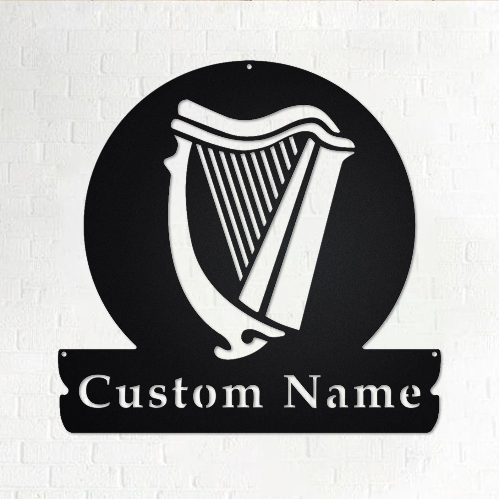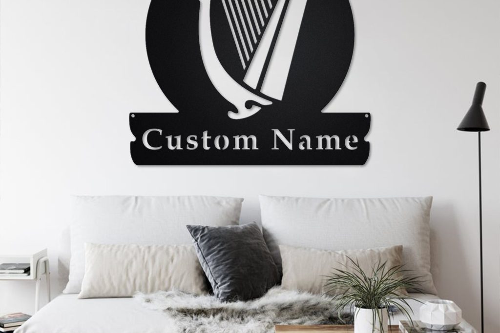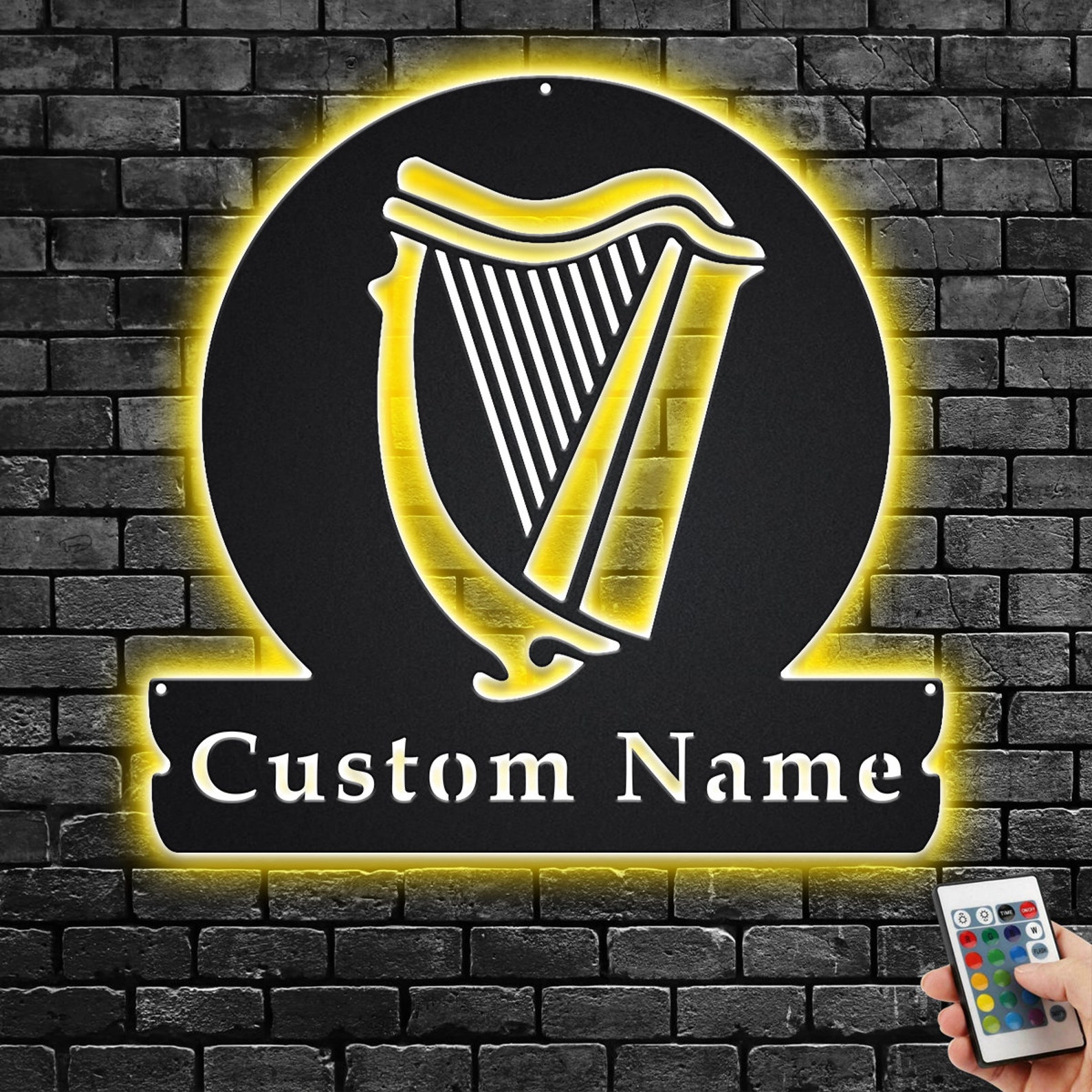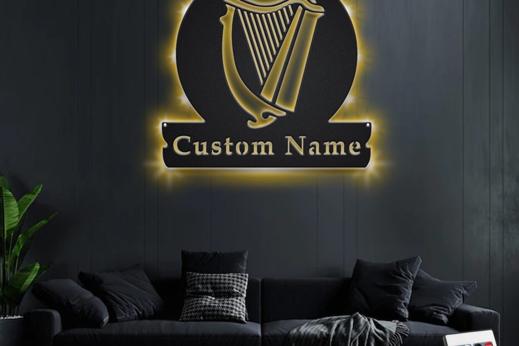 Custom Celtic Harp Metal Sign with LED – Room Decoration