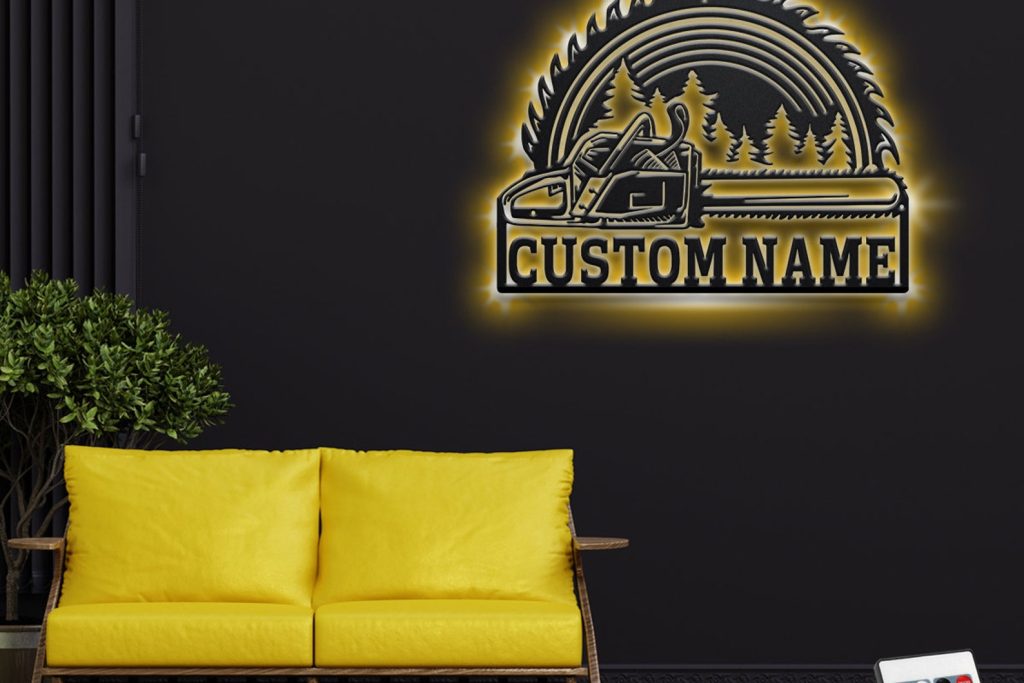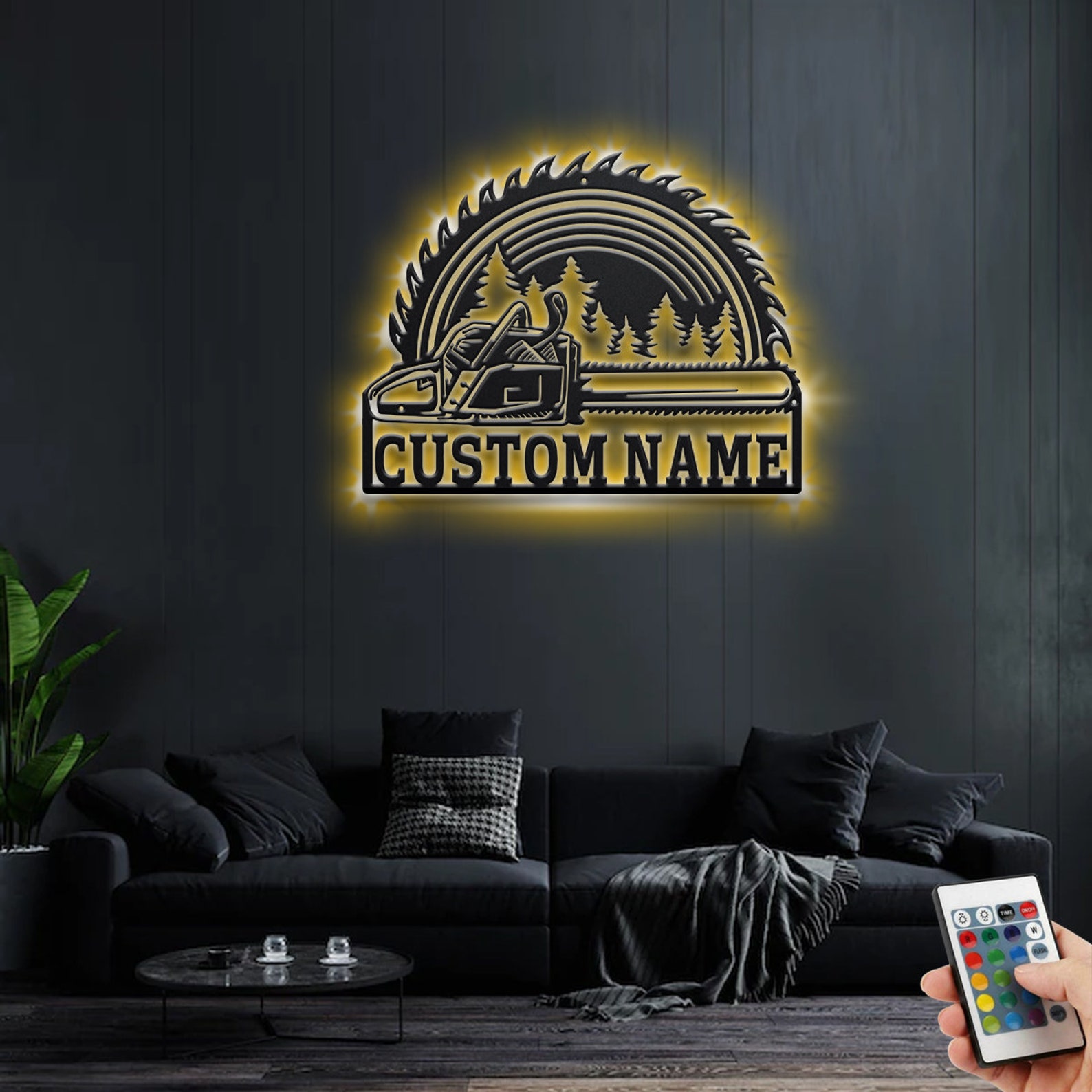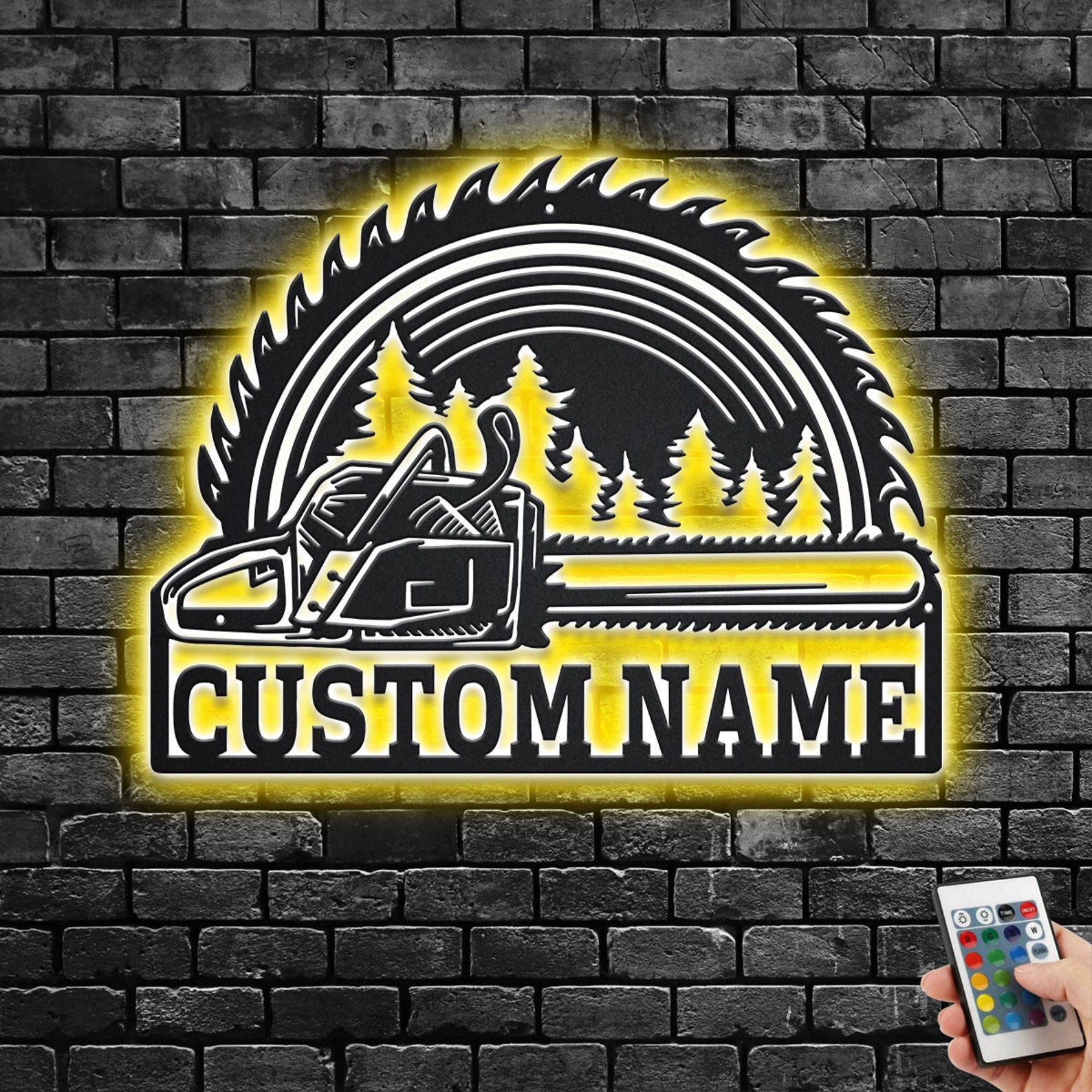 Custom Chainsaw Wood Metal Wall Art with LED Light