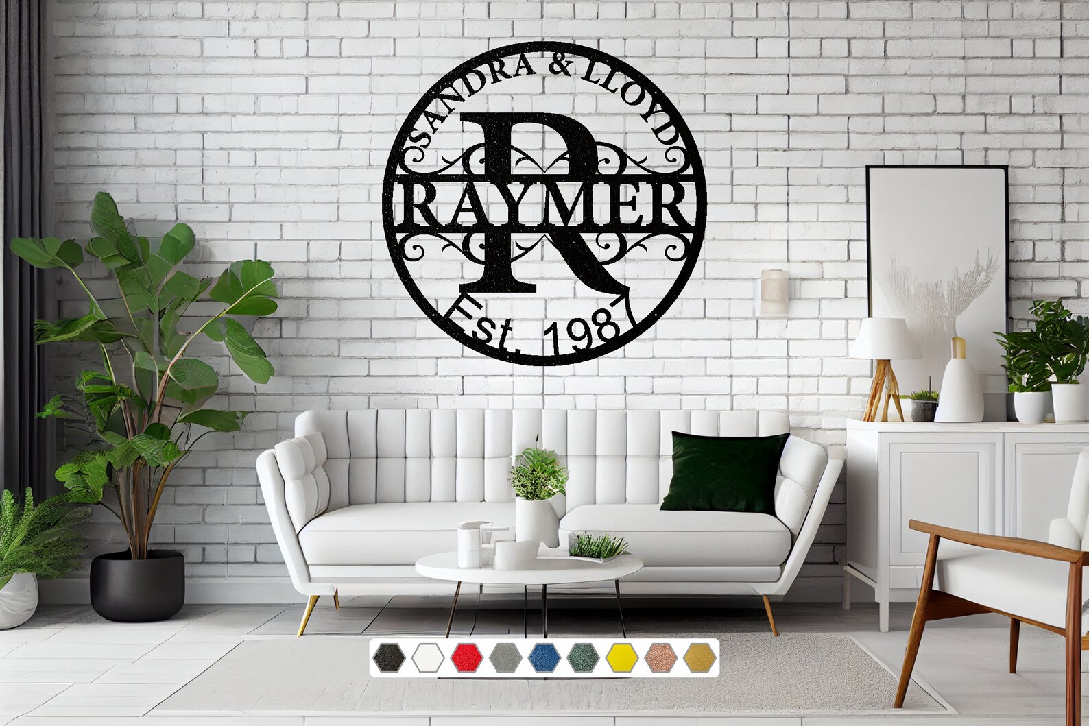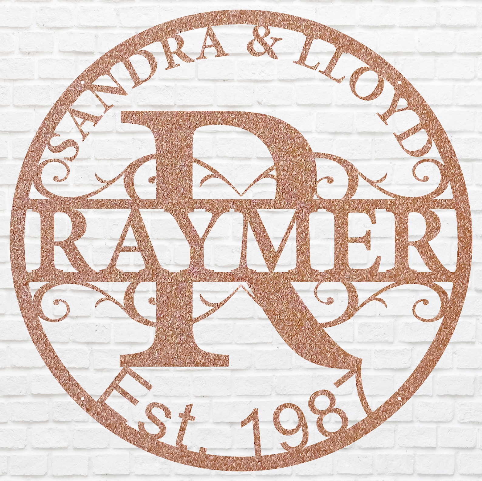 Custom Circular Monogram Sign: Family Name, Metal Wall Decor