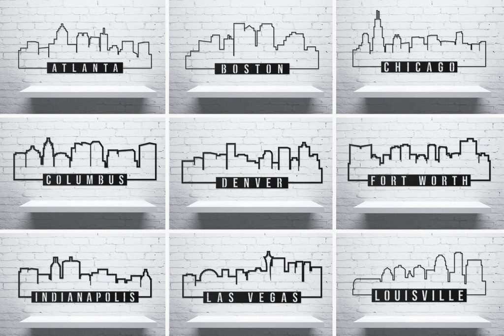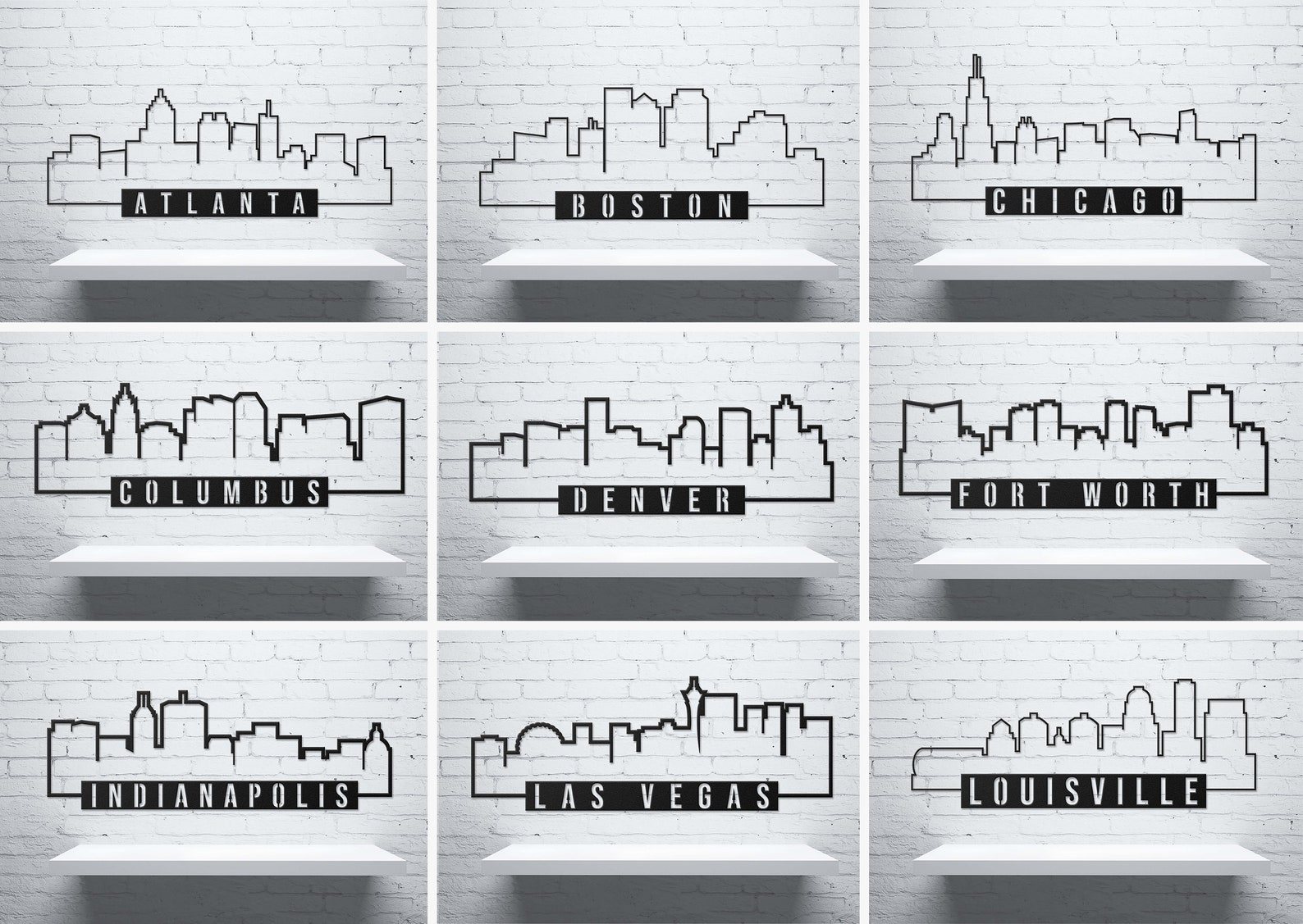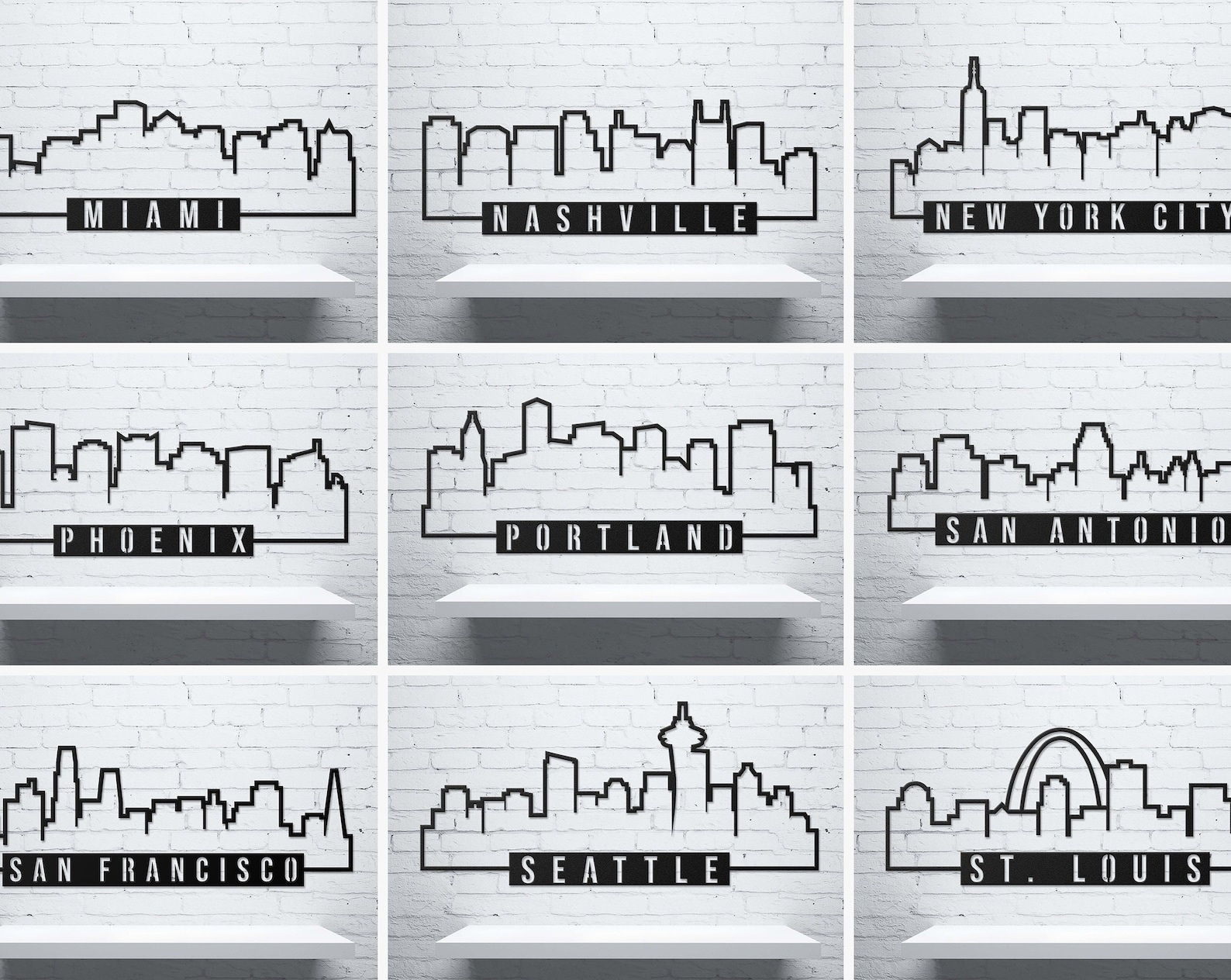 Pick your city and elevate your home dcor with personalized city skyline metal artwork. Our custom metal signs are made with 18 gauge steel and powder coated in your choice of 3 colors and one-of-a-kind art pieces. Add a touch of this stunning cityscape hanging wall art to your home, office, garage, bedroom, bathroom, or kitchen. Perfect for housewarming, birthday, wedding, anniversary, or holiday gifts for your loved ones.