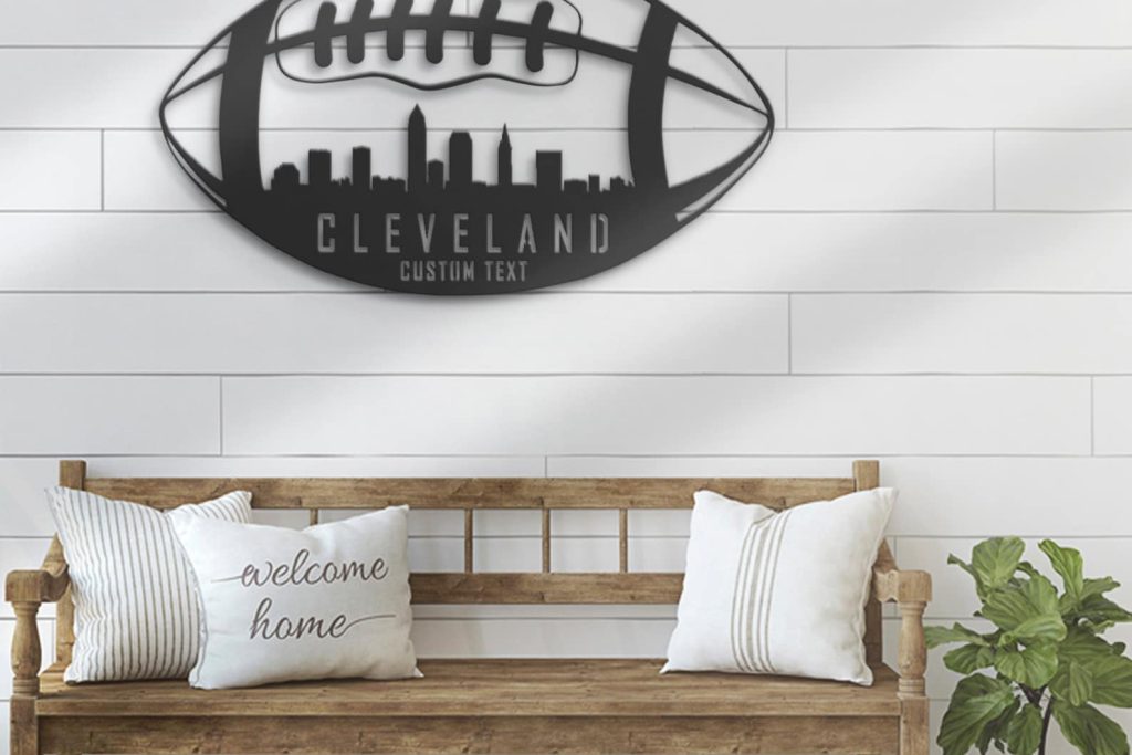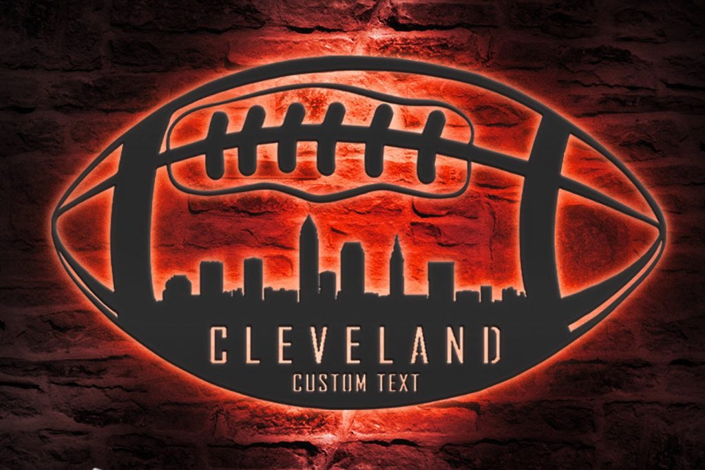 Custom Cleveland Skyline Metal Wall Art – LED Light, Personalized Player Sign