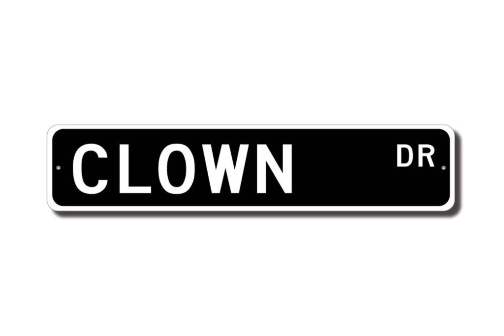 Clowns check out this awesome street sign! This will make the perfect piece for any Clown or maybe you are a Clown looking for a cool decor piece. Made of premium aluminum it will stand the test of time. This sign will look great in any room, home den, cave, or office! Get this sign for your favorite Clown !