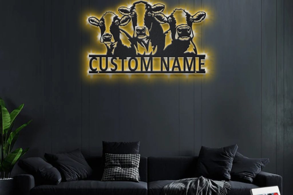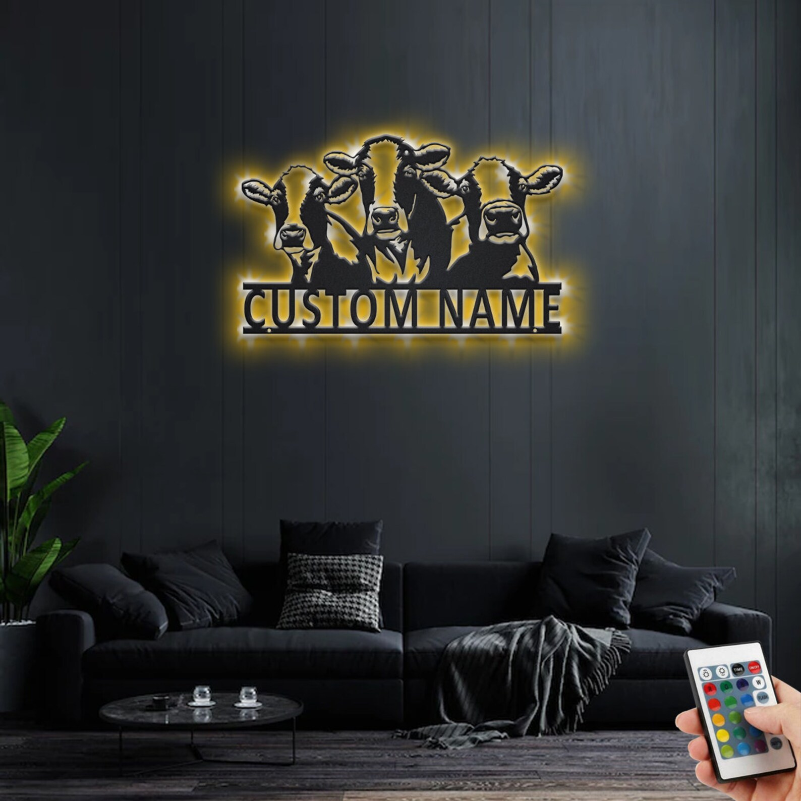 Be the first to review “Custom Cow Farm Metal Art with LED Light”