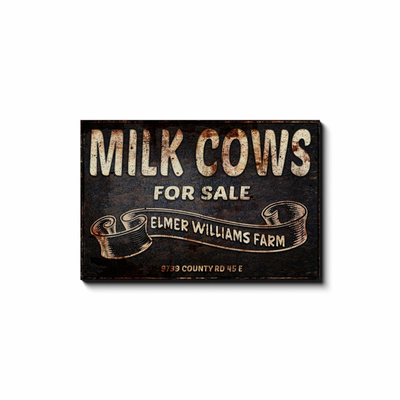 Cows For Sale Sign is uniquely designed to look like an old vintage metal sign, rusty and weathered with age, but it9;s canvas! Personalize it and make it your own. This lightweight canvas art arrives ready to hang and enjoy. Your family and guests will LOVE it, and it makes a wonderful, thoughtful gift!