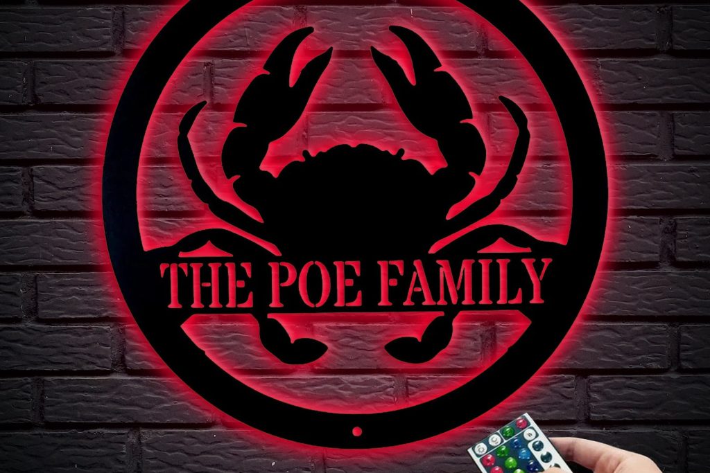 Custom Crab metal sign, Personalized LED Wall Art, Beach Decor, Outdoor Wall Decor for Indoor or Outdoor Display, LED Wall Art