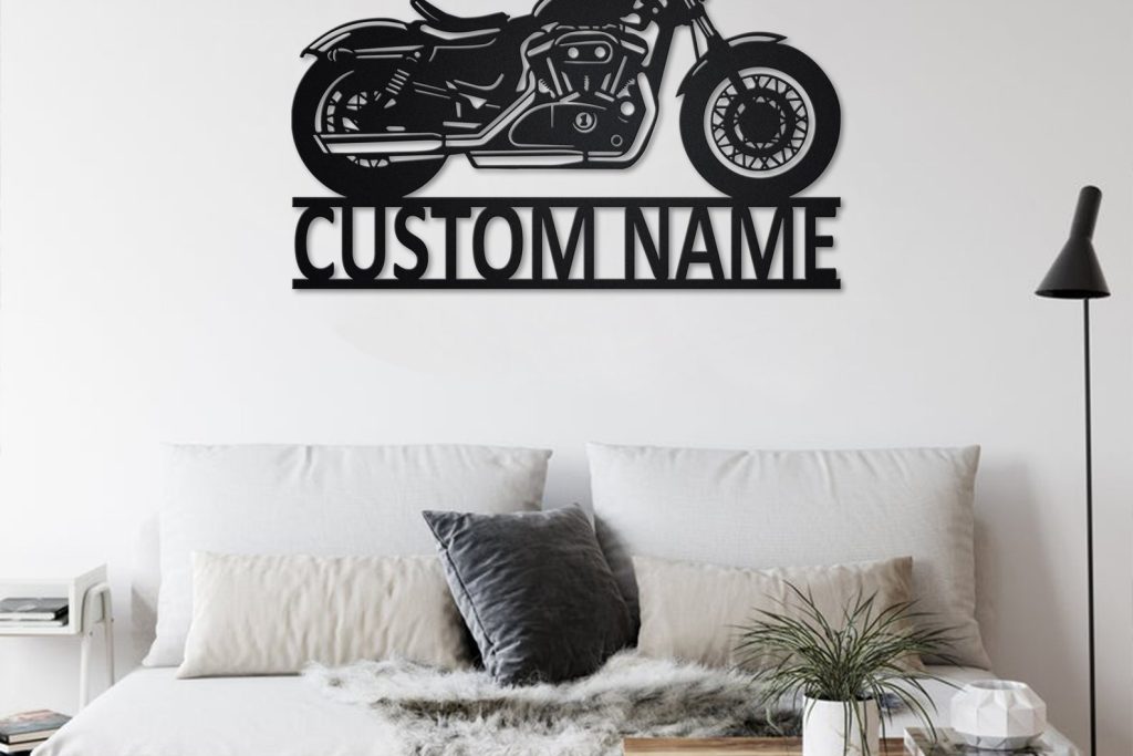 Custom Cruiser Motorcycle Metal Wall Art – LED Light, Personalized Biker Name Sign