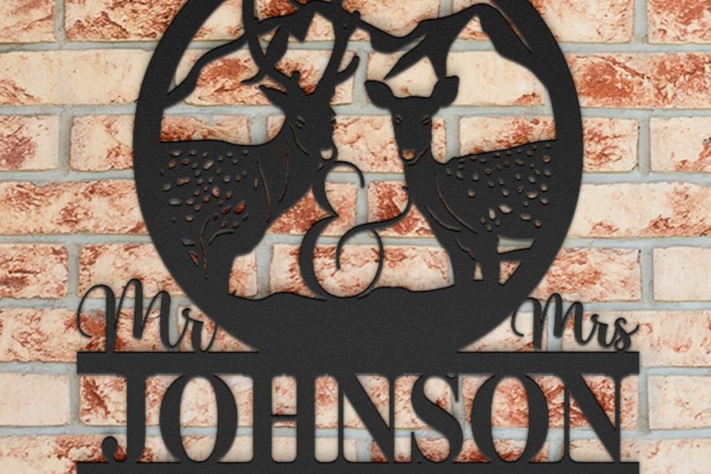 Be the first to review “Custom Deer Couples Monogram Metal Sign”
