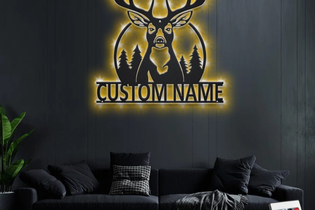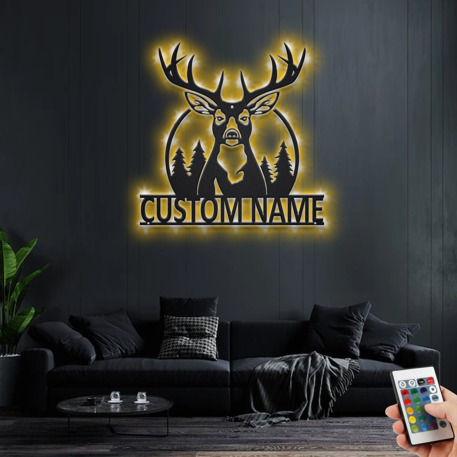 Custom Deer Metal Sign with LED – Hunter Room Decor