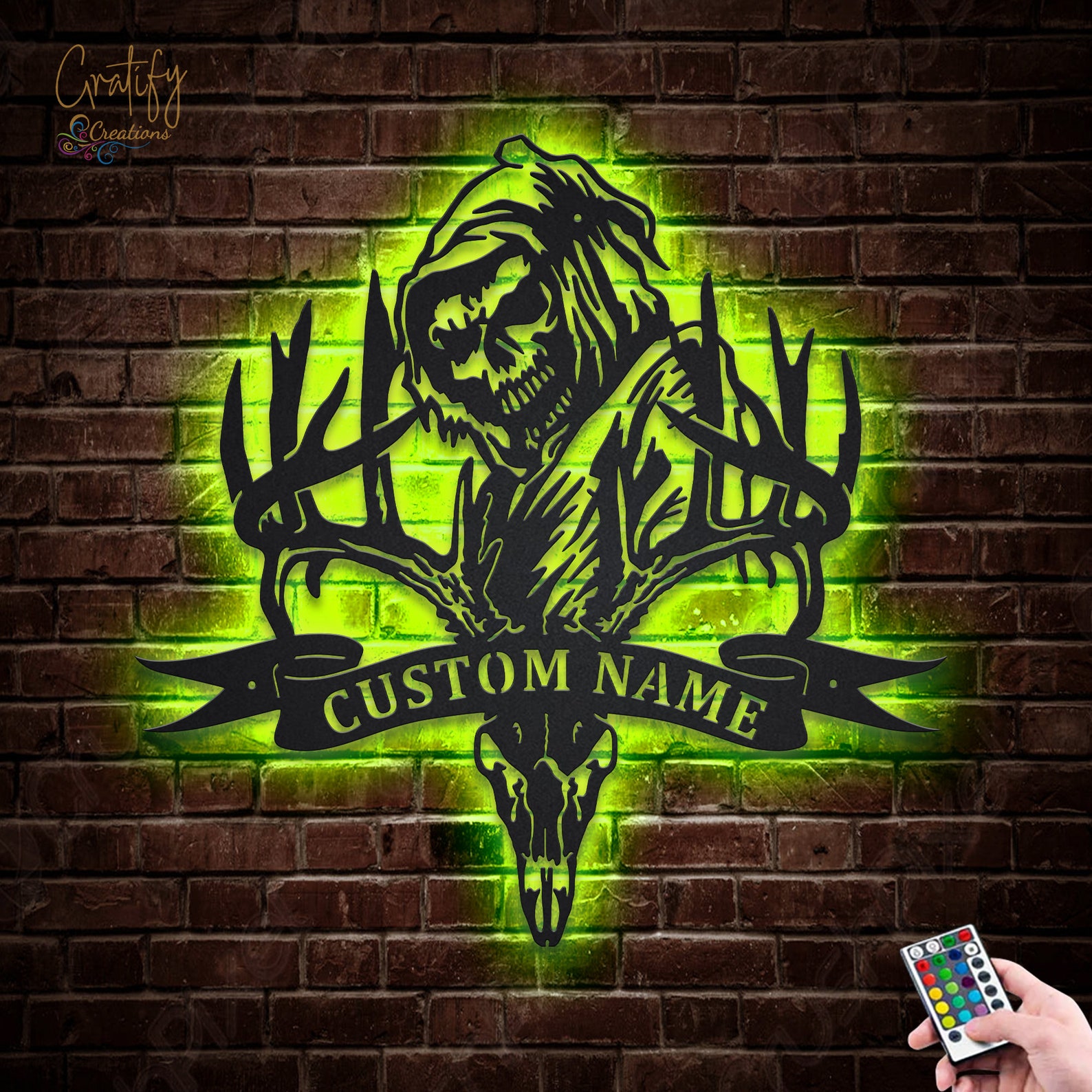 Be the first to review “Custom Deer Skull Metal Sign with LED – Hunting Gift”