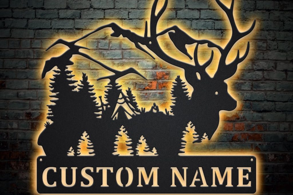 Be the first to review “Custom Deer Wildlife Camping Metal Sign with LED – Cabin Gift”