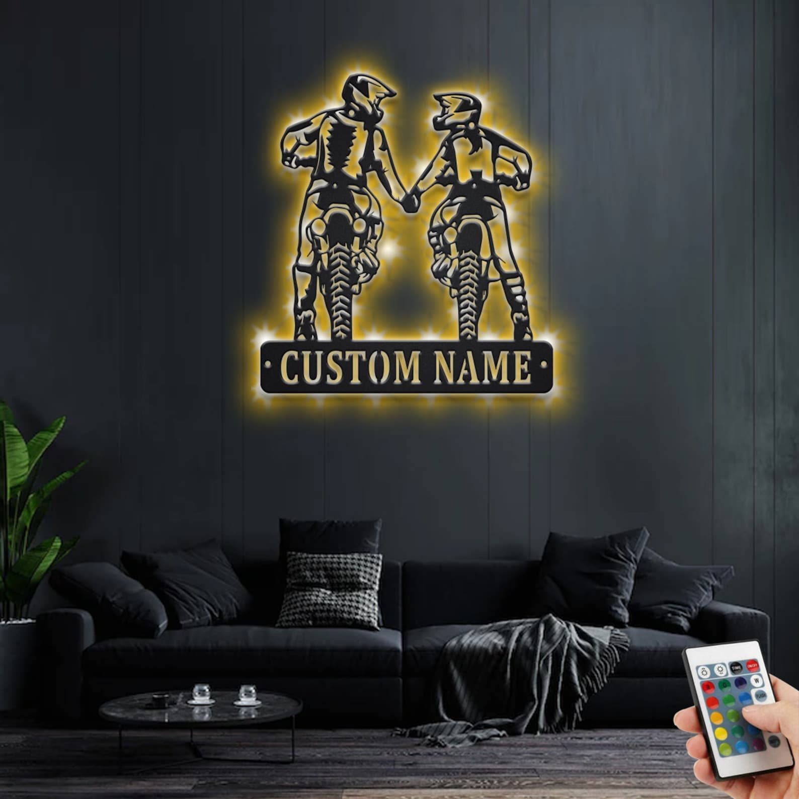 Be the first to review “Custom Dirt Bike Couple Metal Art with LED Light”