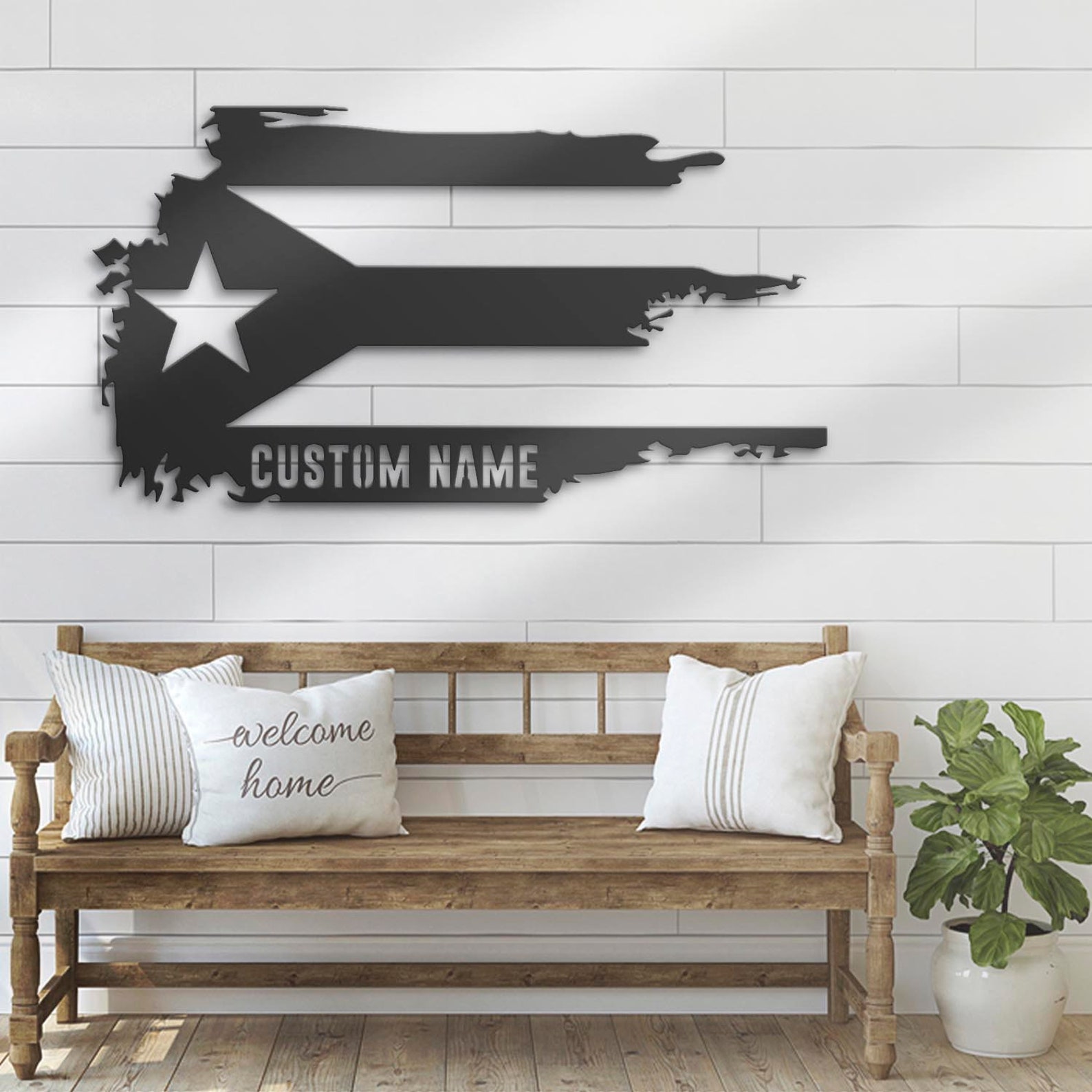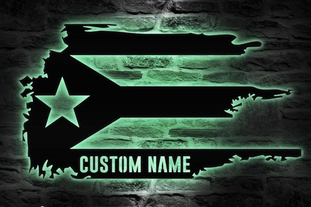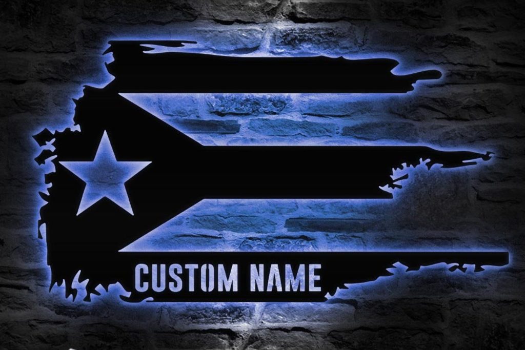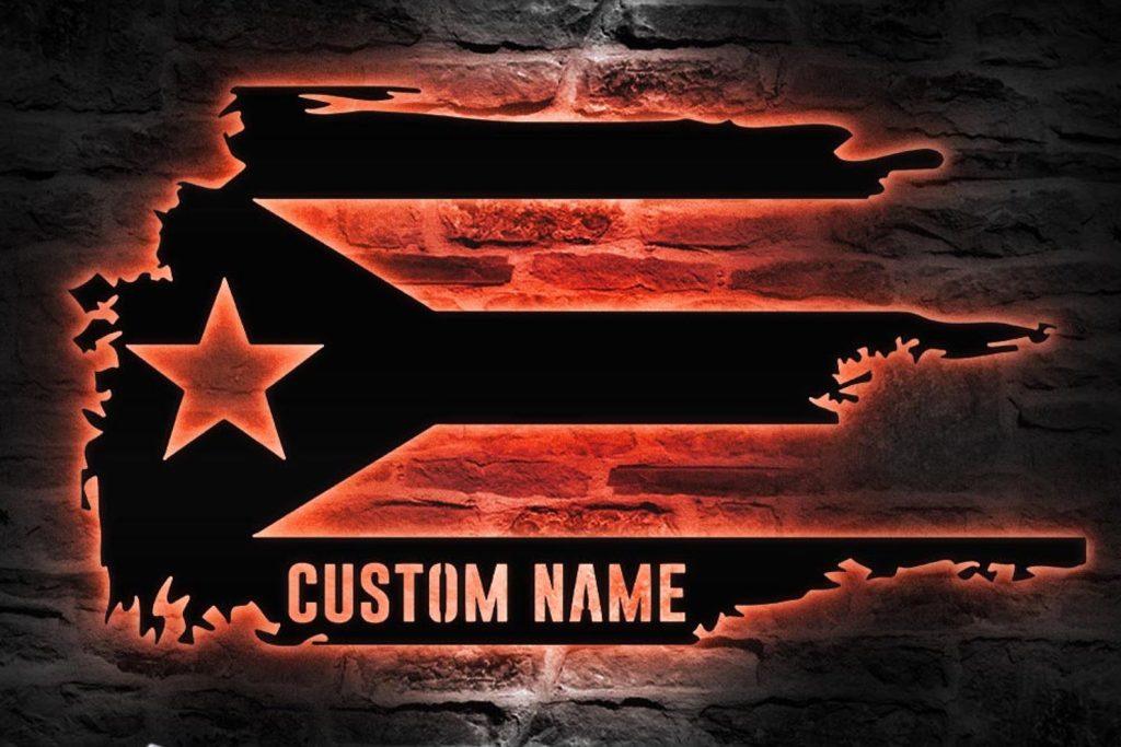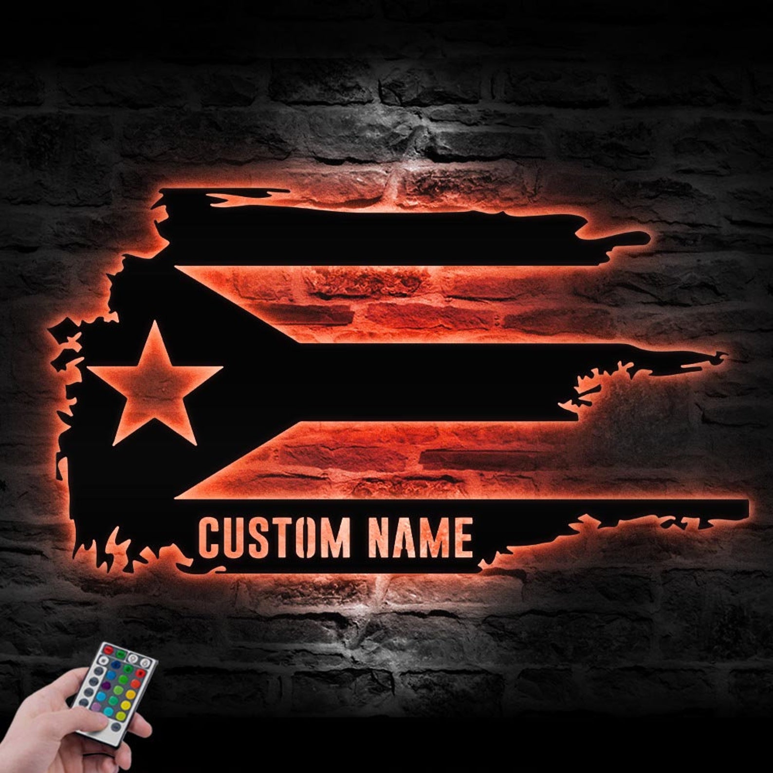 Custom Distressed Puerto Rico Flag Metal Wall Art – LED Light, Personalized Sign
