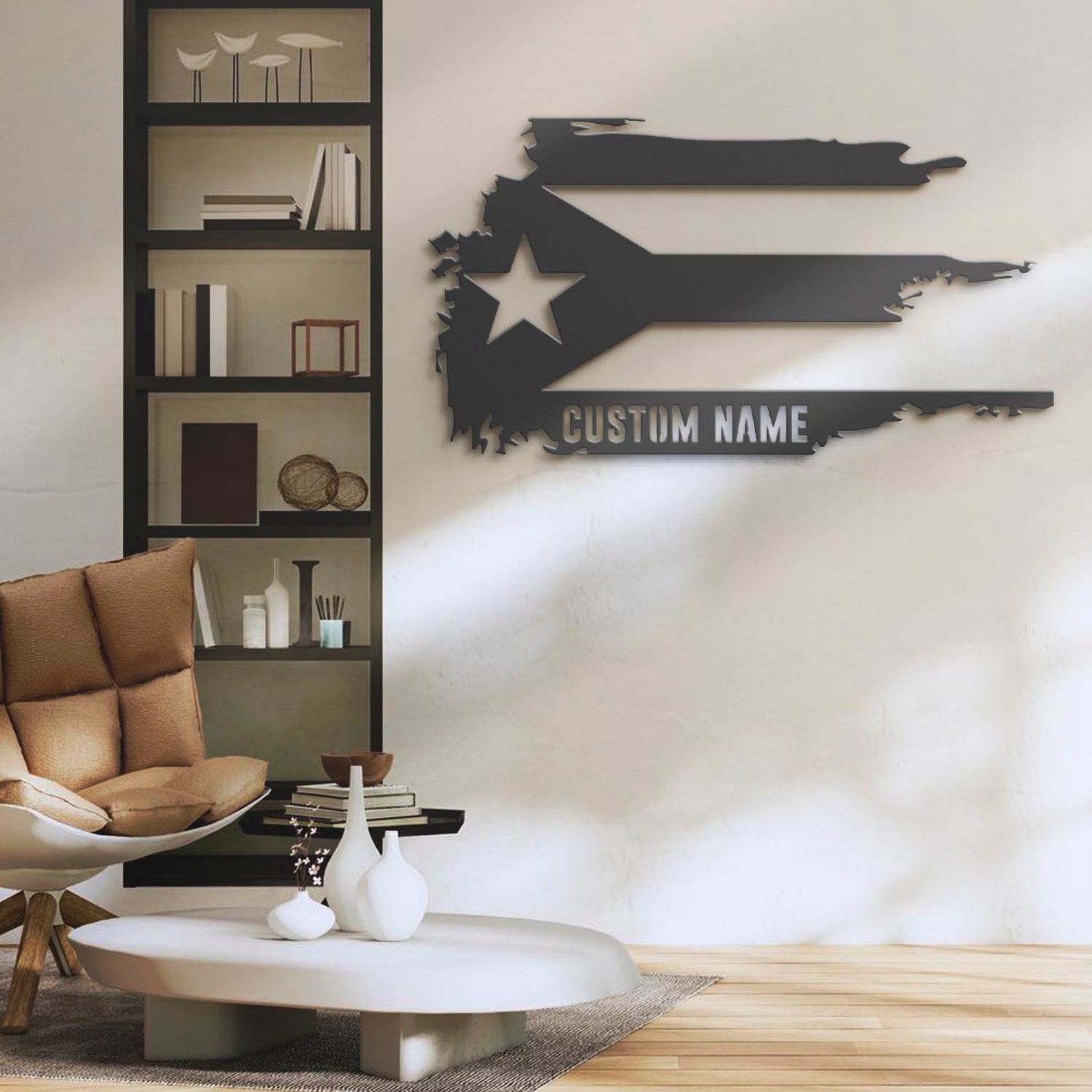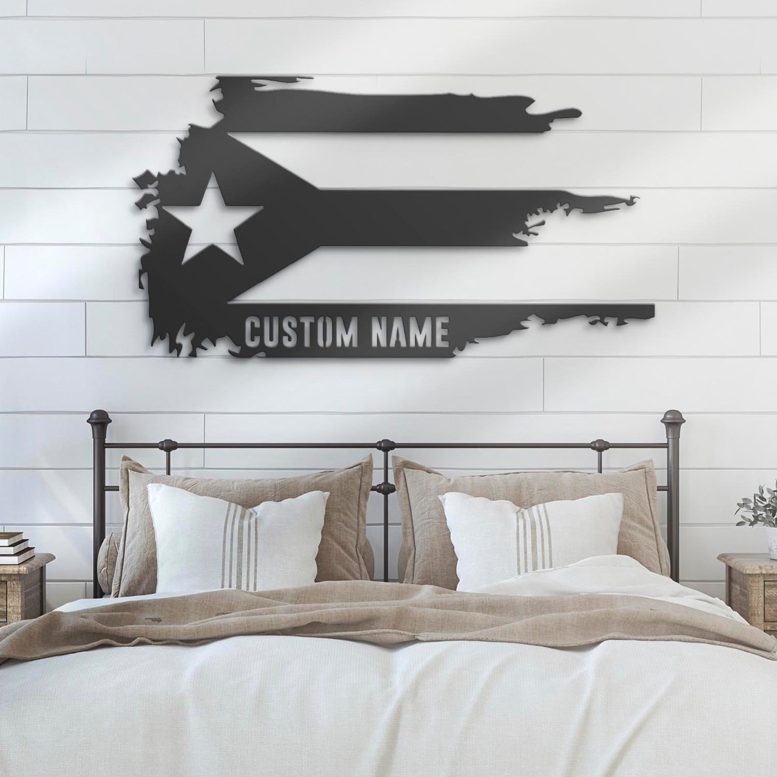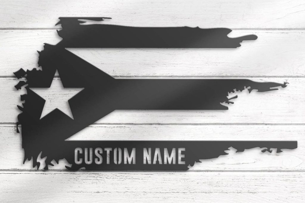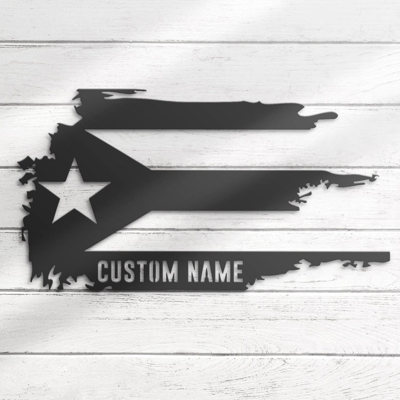 Custom Distressed Puerto Rico Flag Metal Wall Art – LED Light, Personalized Sign