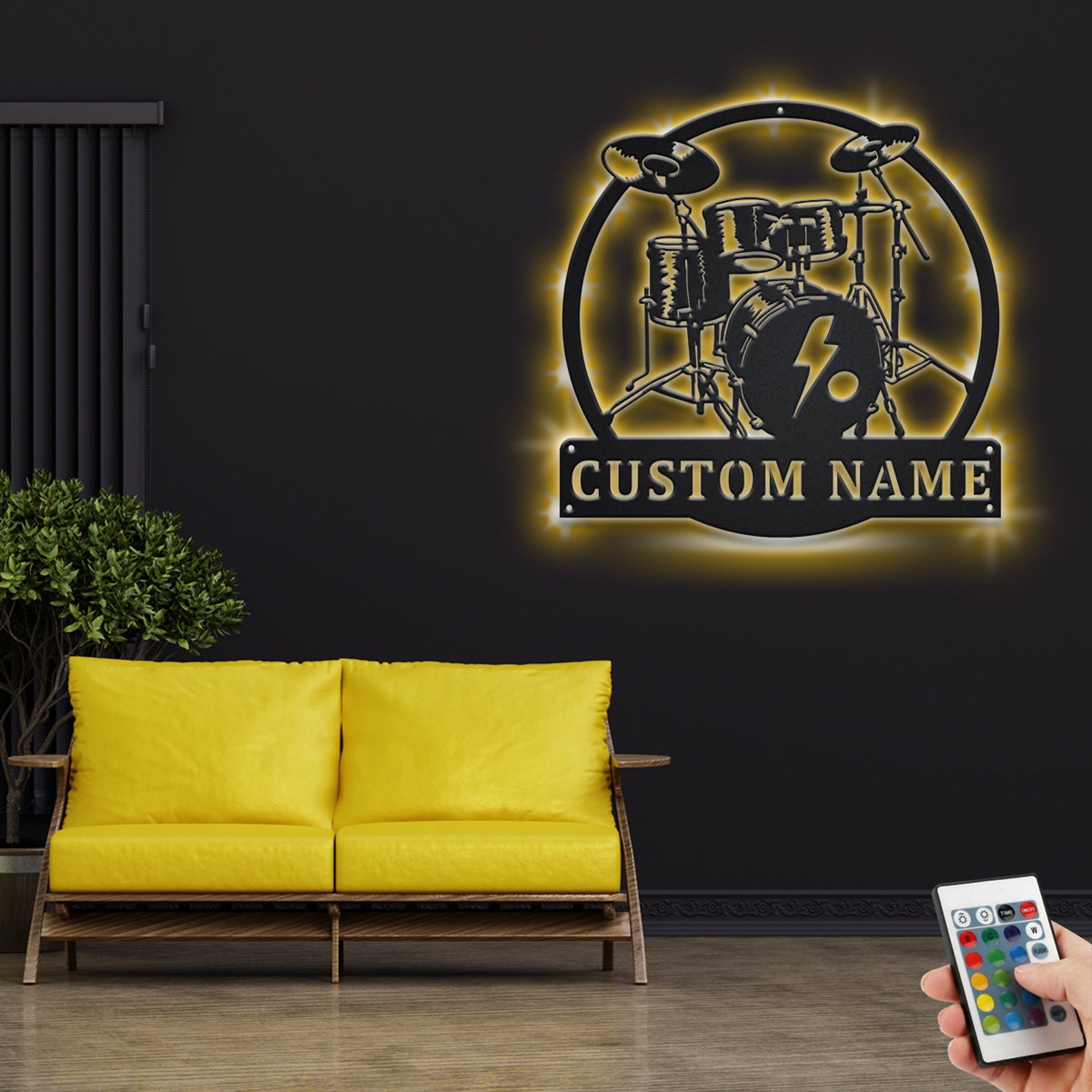 Custom Drummer Metal Sign with LED – Music Room Decor