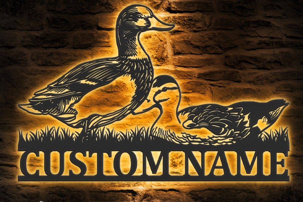 Custom Duck Love Metal Sign with LED – Farmhouse Decor