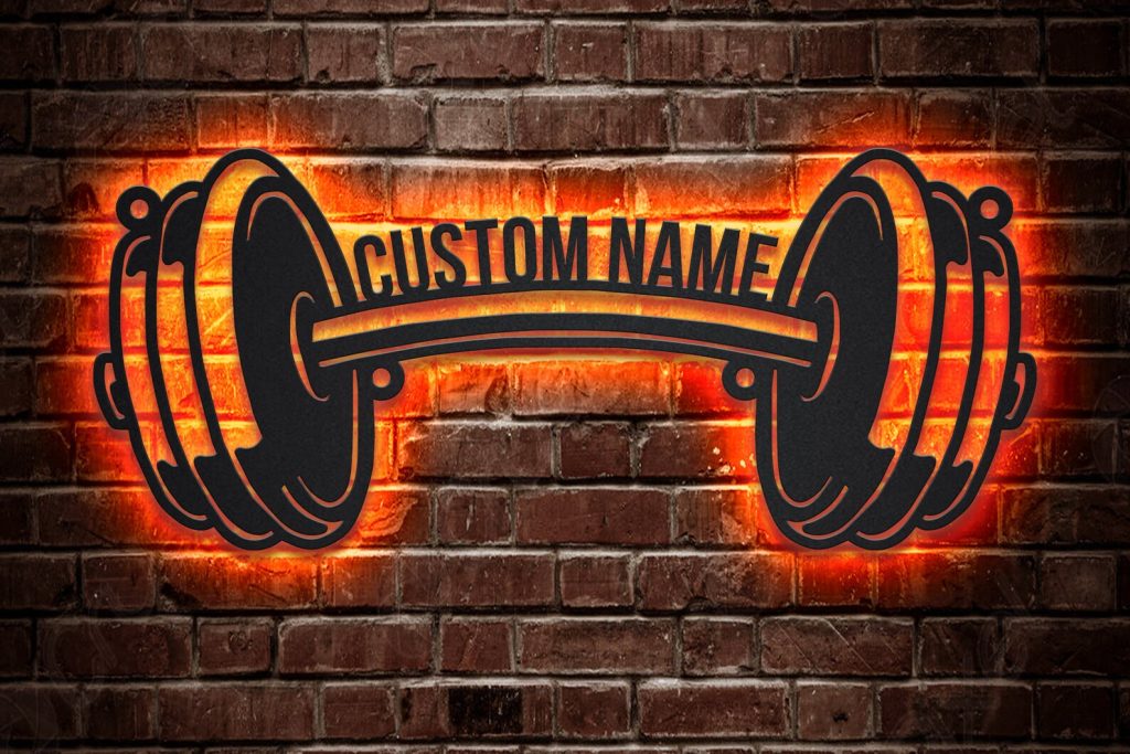 Be the first to review “Custom Dumbbell Fitness Metal Sign with LED V4 – Gym Decor”