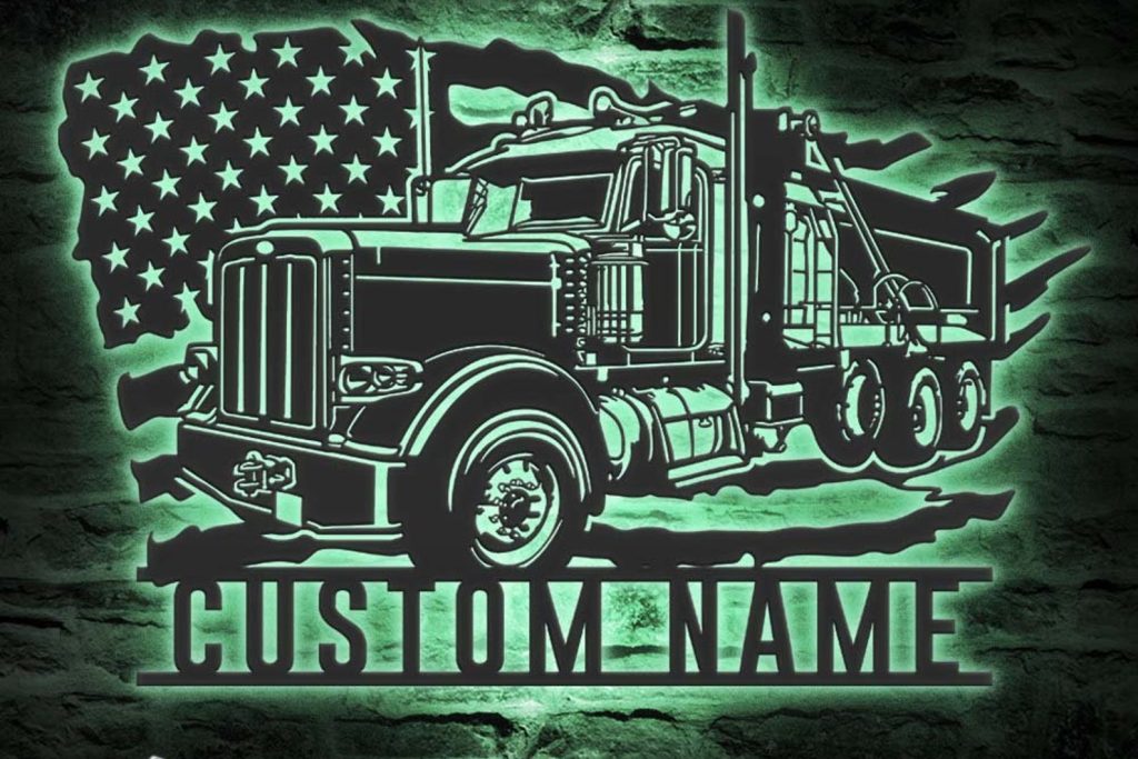 Be the first to review “Custom Dump Truck Driver Metal Wall Art with LED & Name”