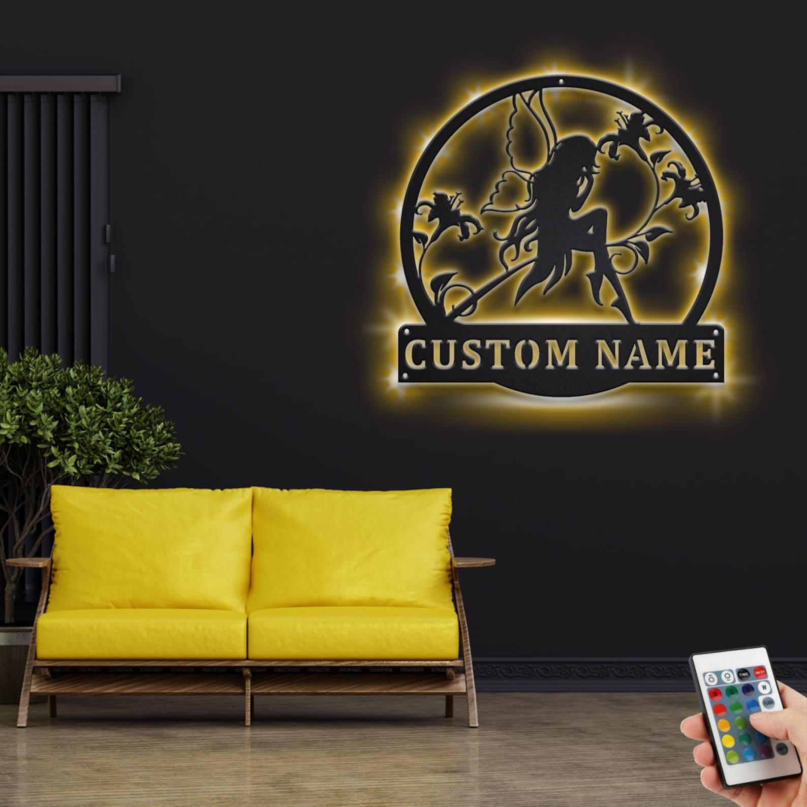 Custom Fairy Metal Wall Art with LED & Personalized Fairy Name