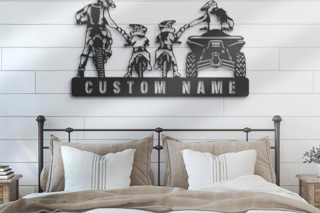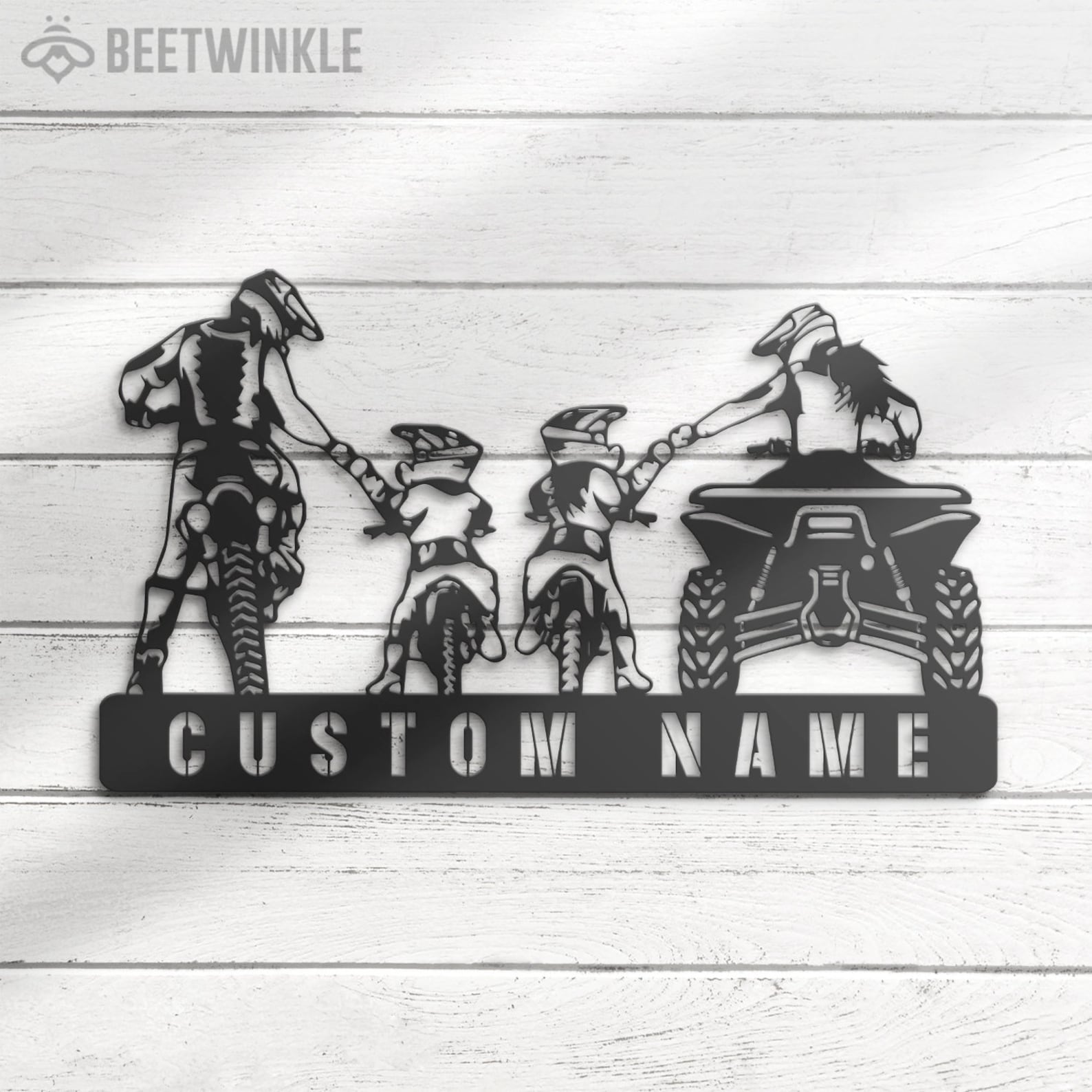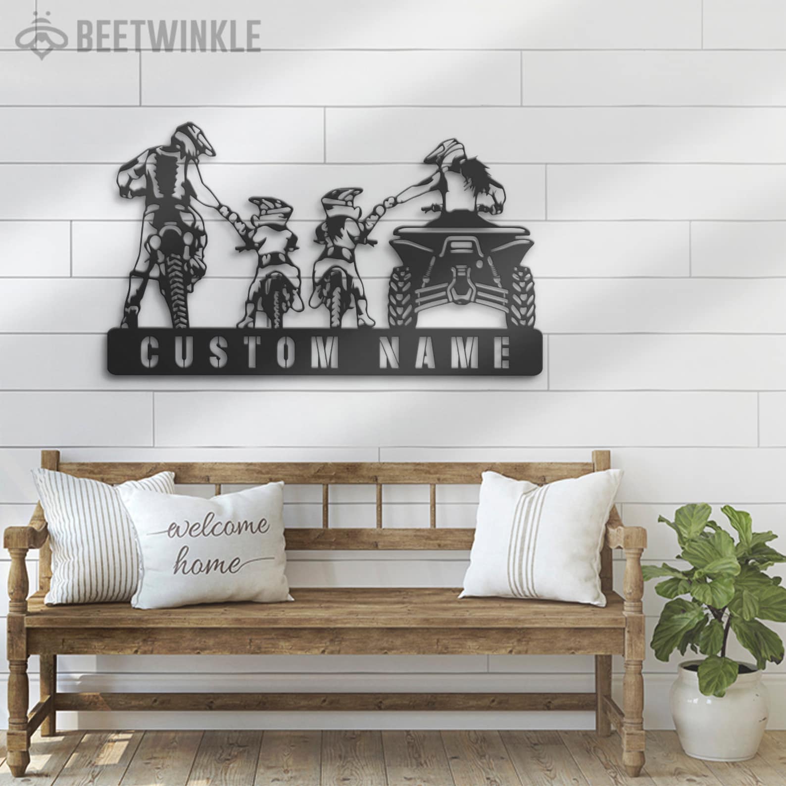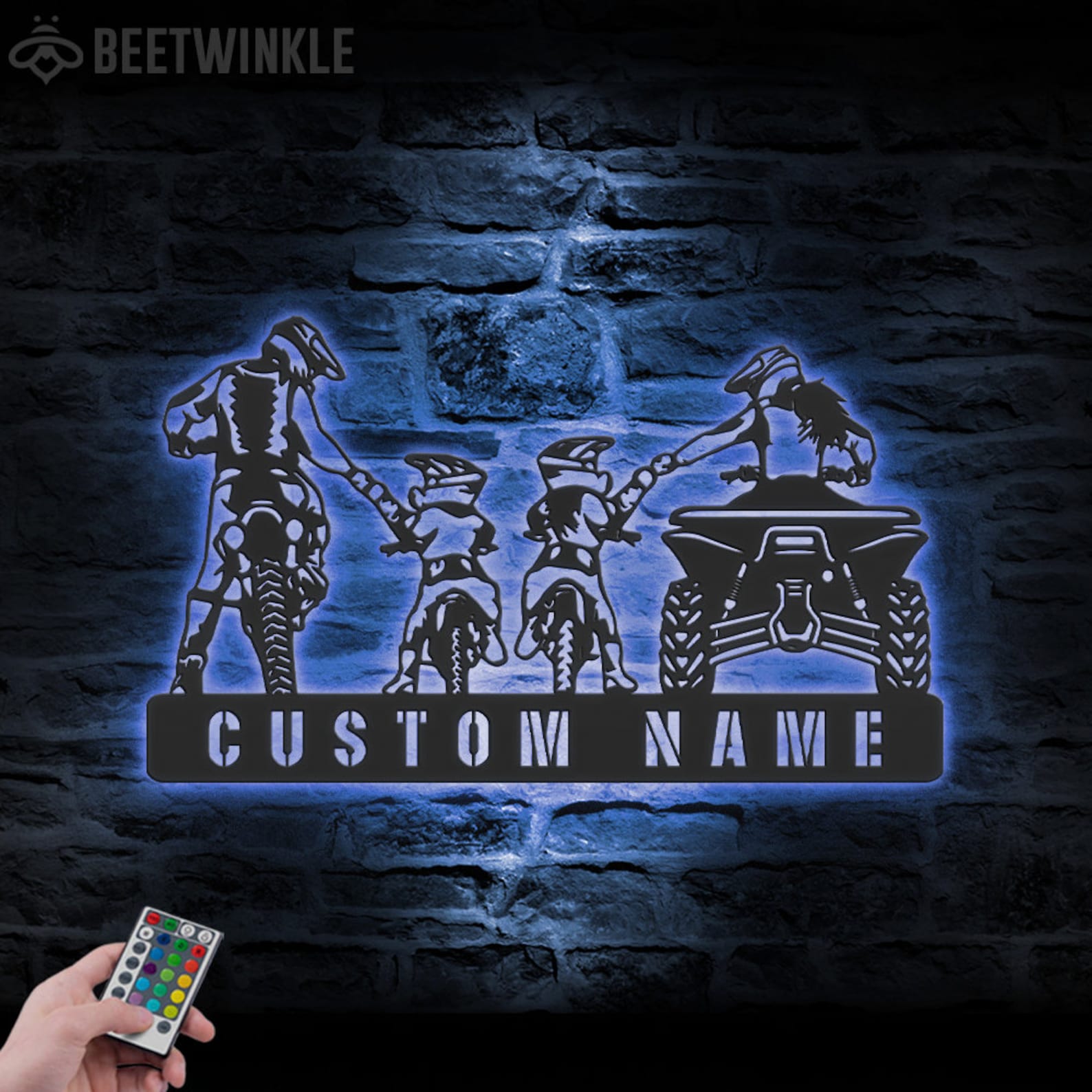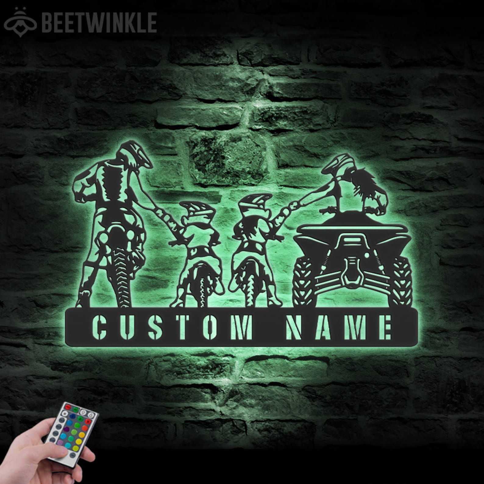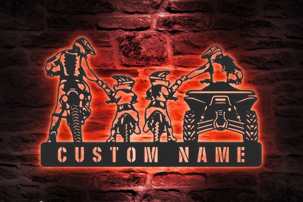 Custom Family ATV Quad Motocross Biker Metal Wall Art – LED Light, Personalized Sign