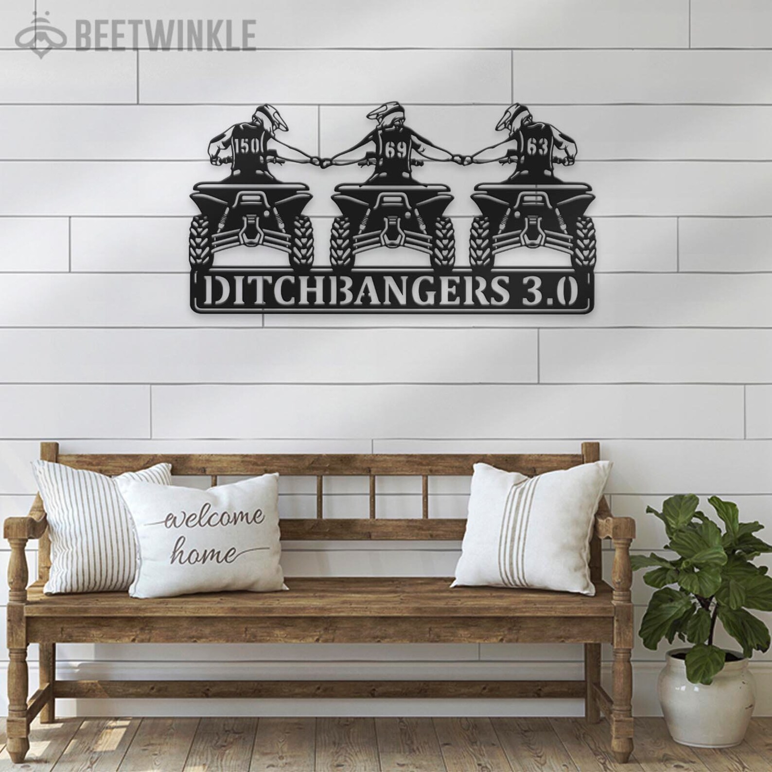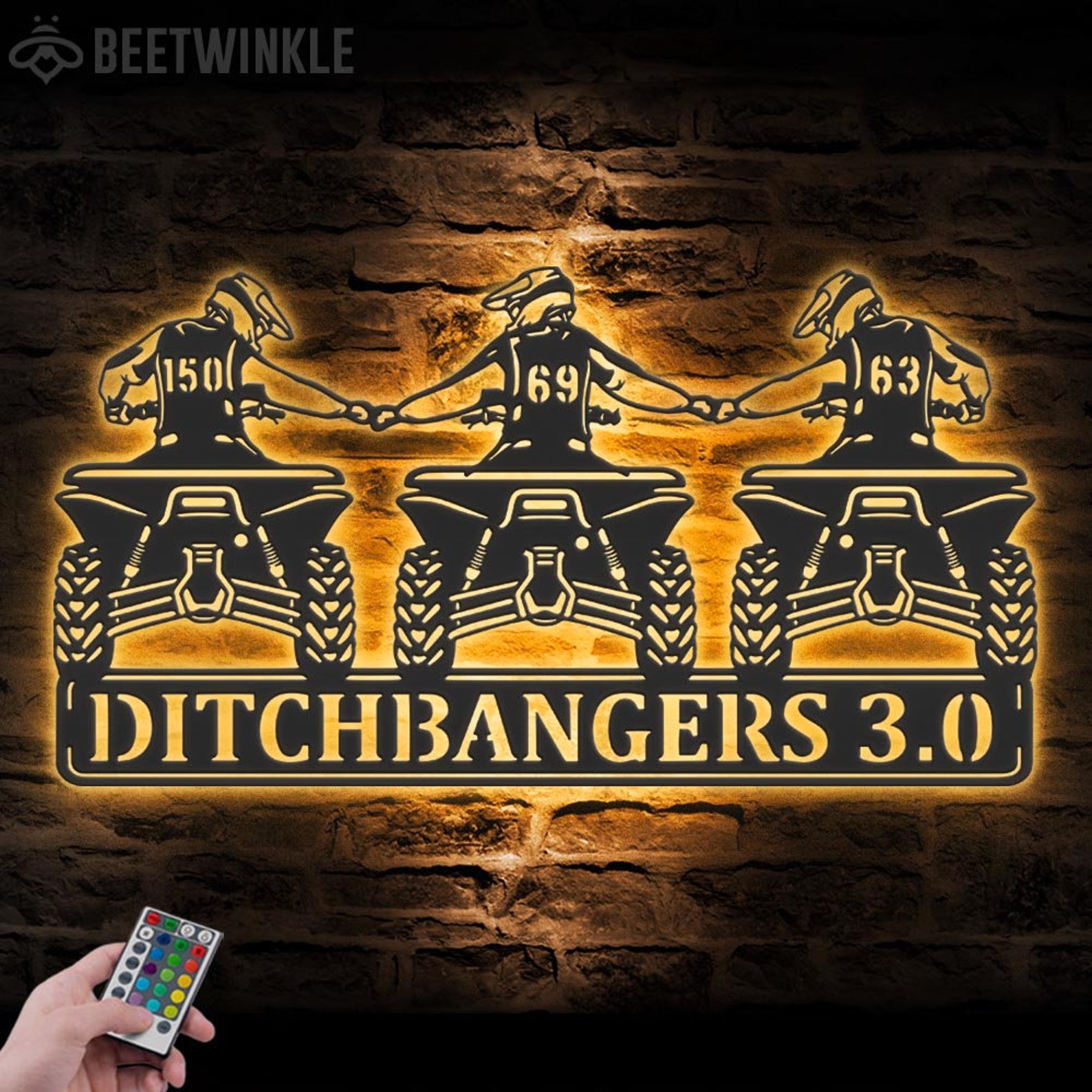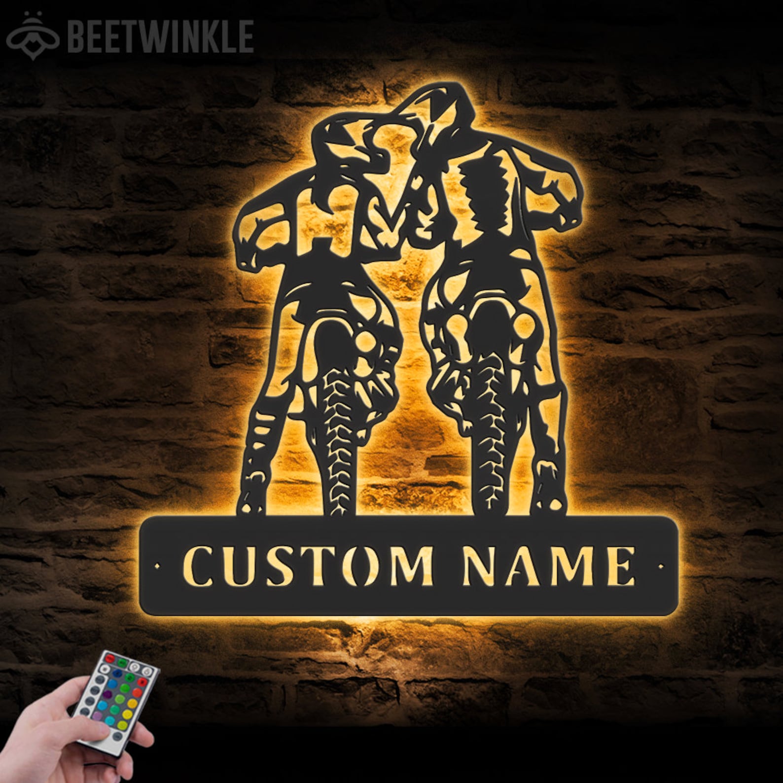 Custom Family ATV Quad Motocross Biker Metal Wall Art – LED Light, Personalized Sign