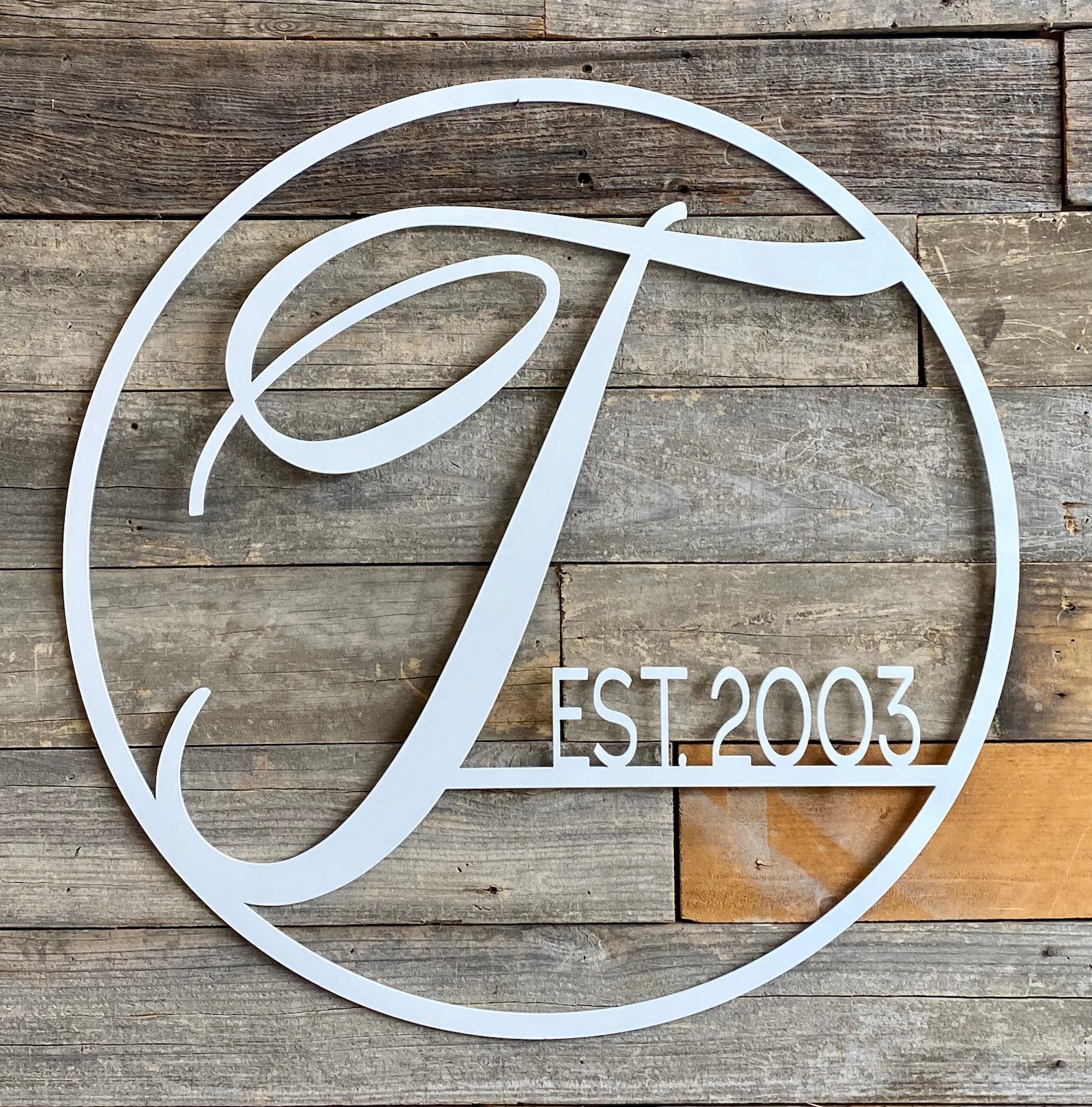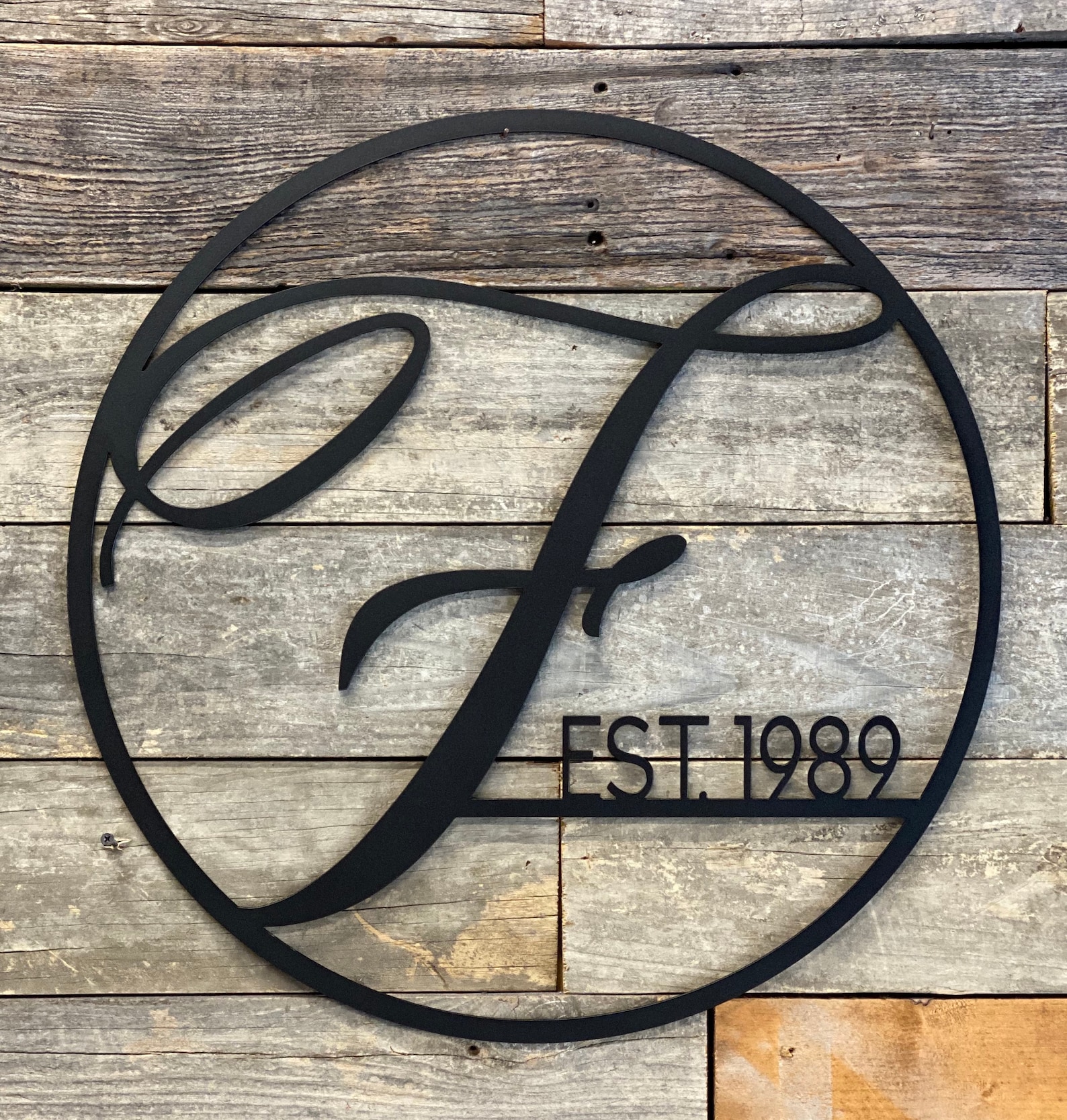 Be the first to review “Custom Family Monogram Metal Sign – Farmhouse Circle Decor”