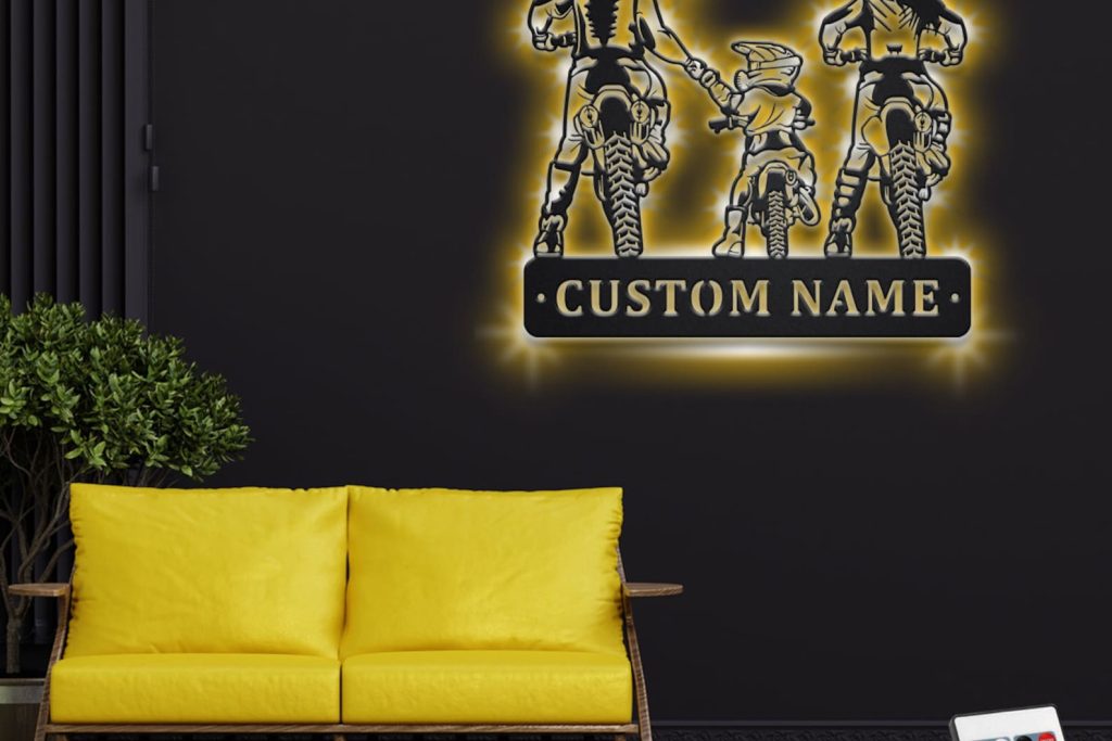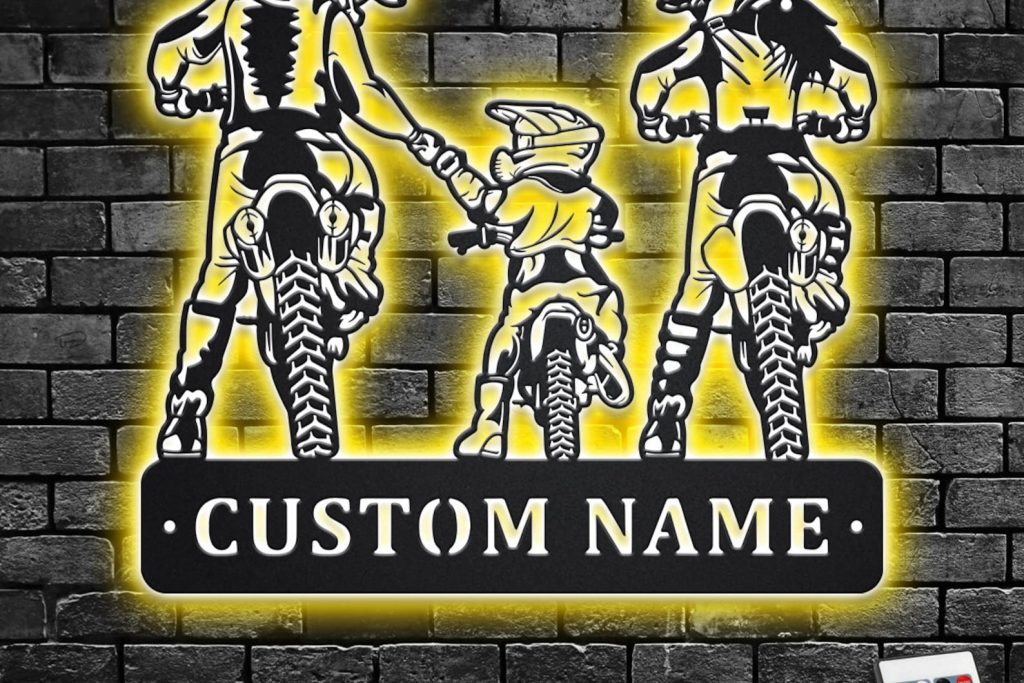 Be the first to review “Custom Family Motocross Metal Wall Art with LED Light, Personalized Name Sign”