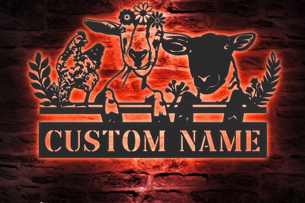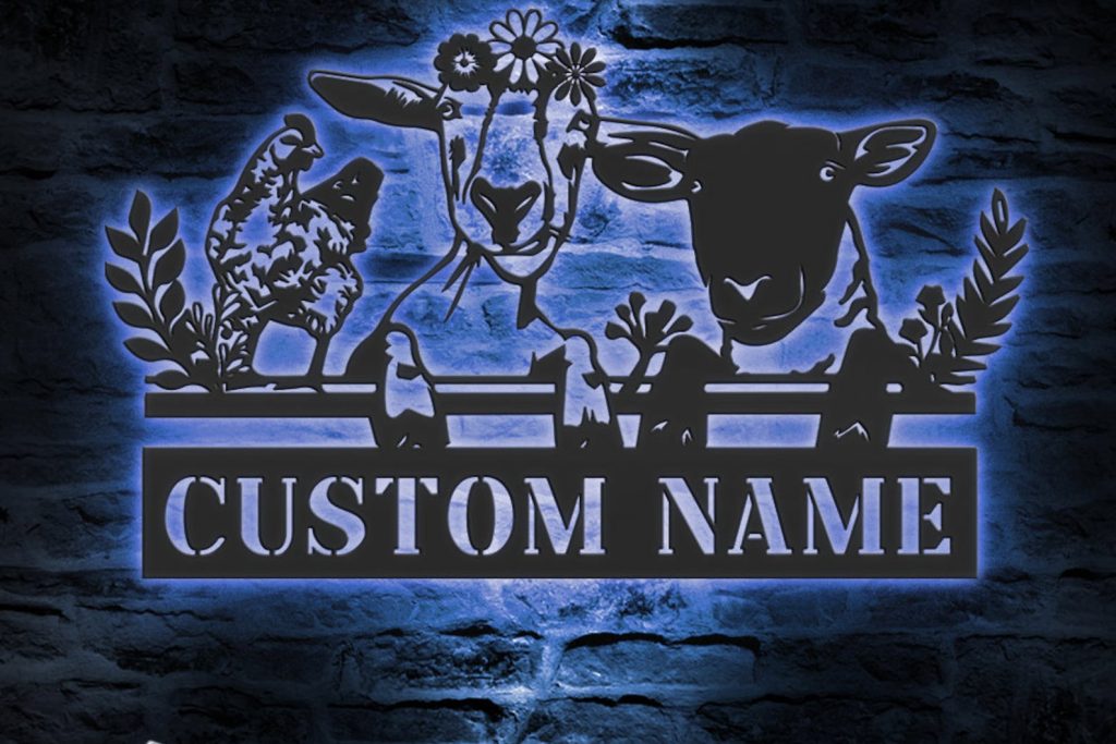Be the first to review “Custom Farmhouse Animal Metal Wall Art with LED Light”