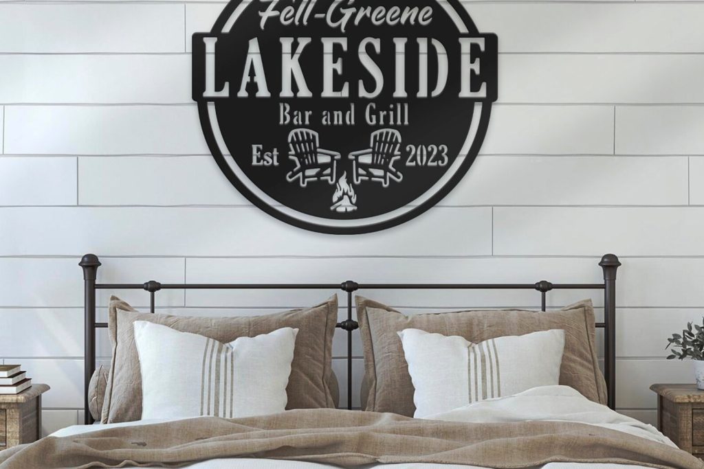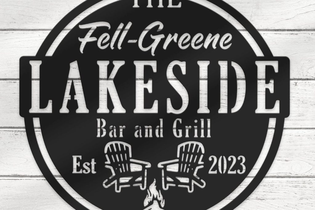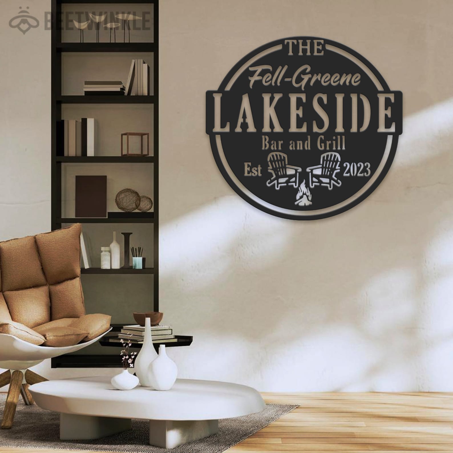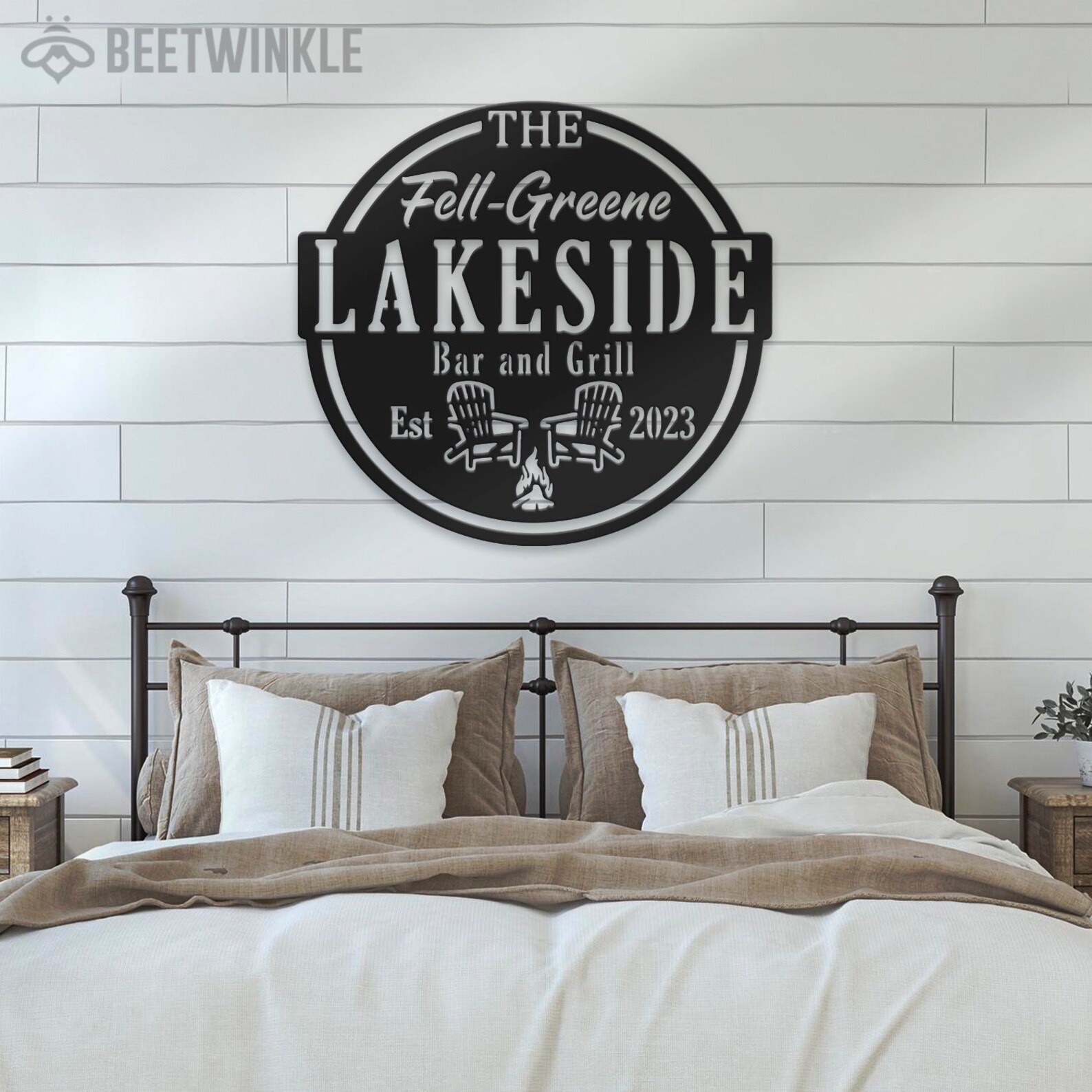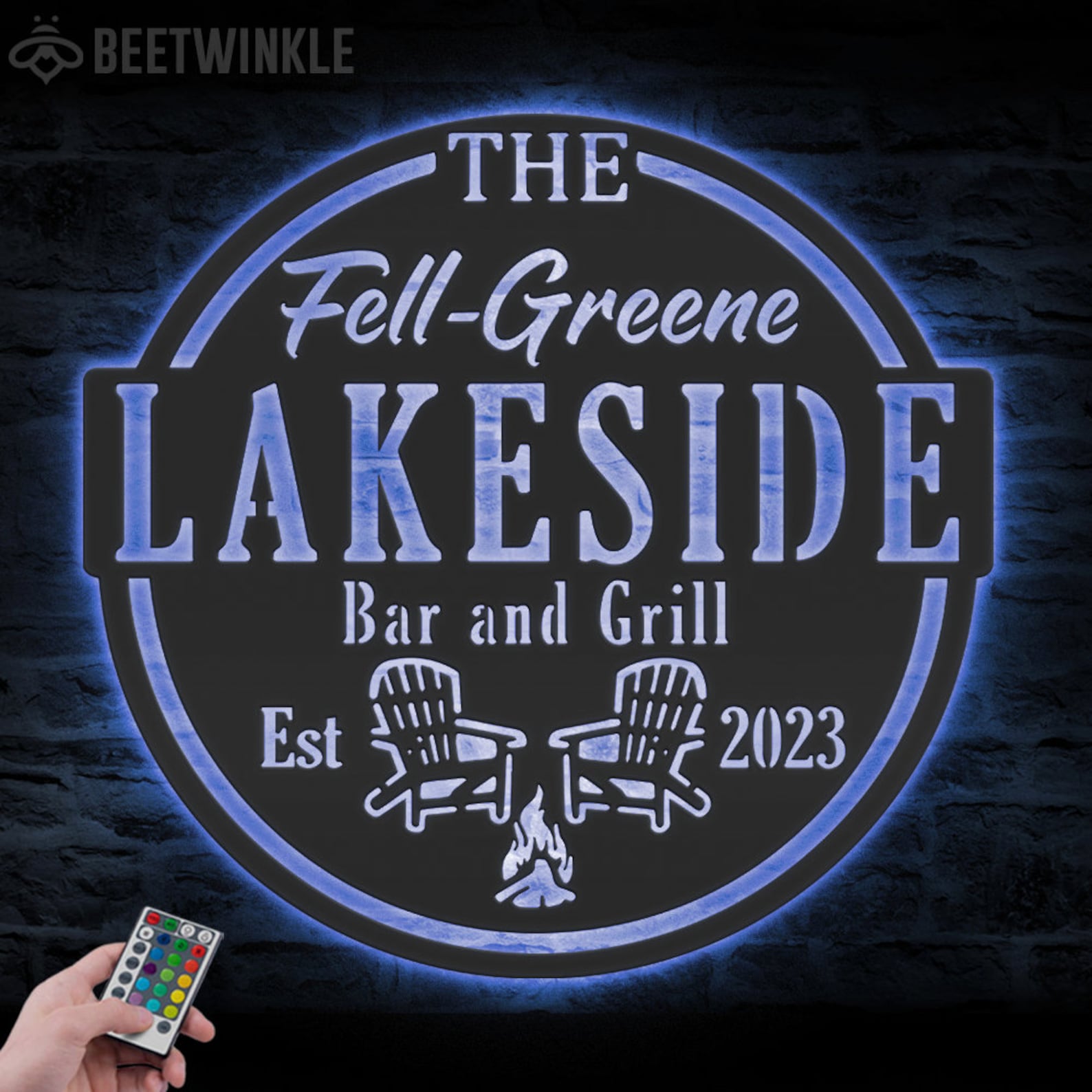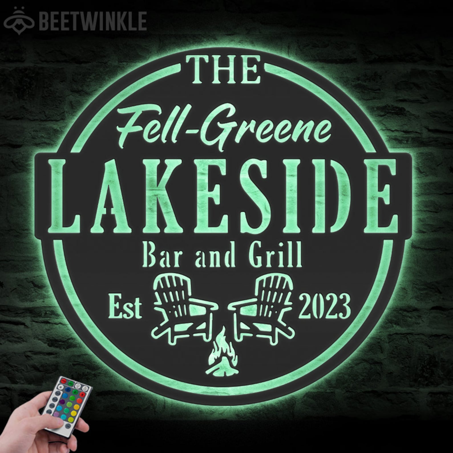 Custom Fire Pit Lake House Metal Wall Art – LED Light, Personalized Campfire Sign