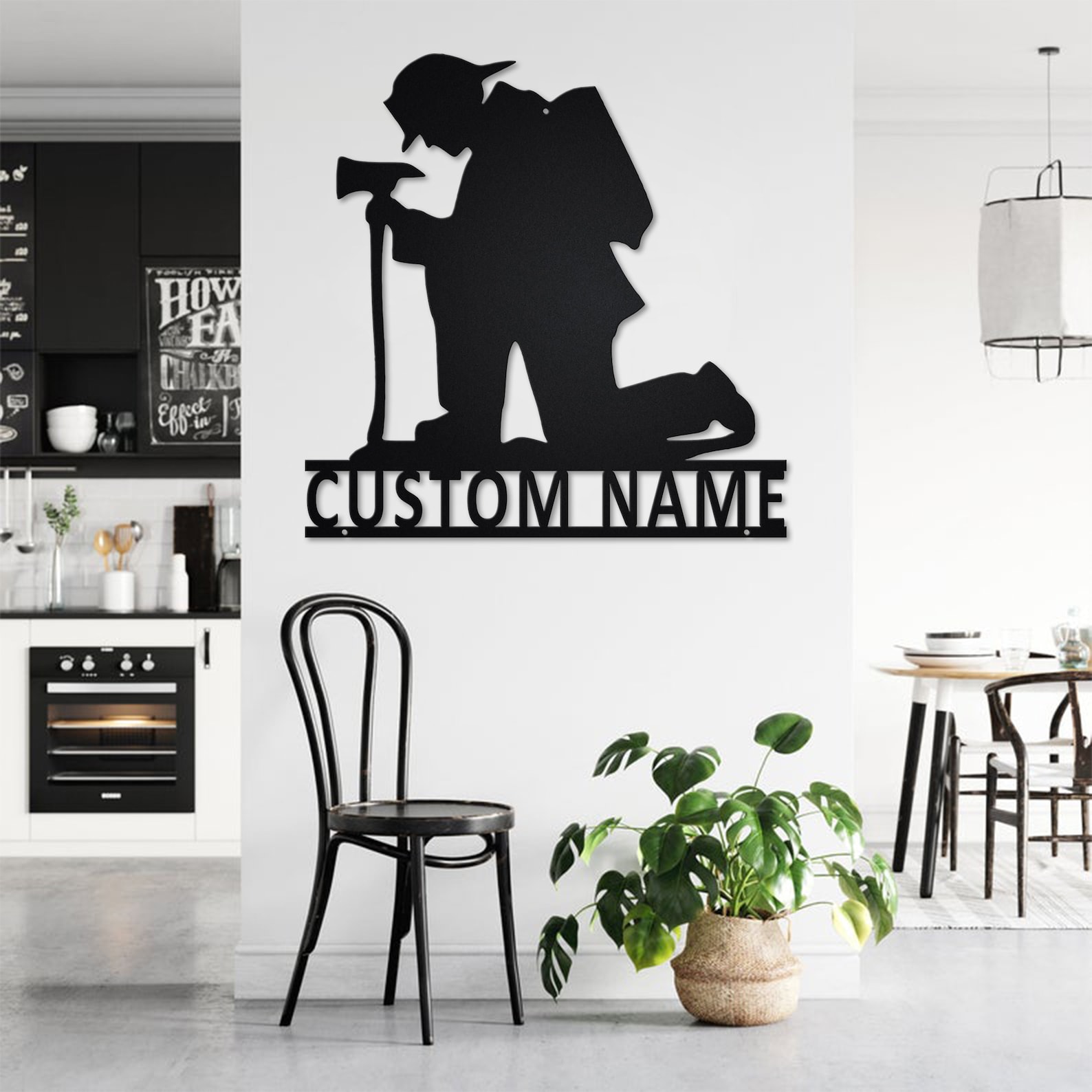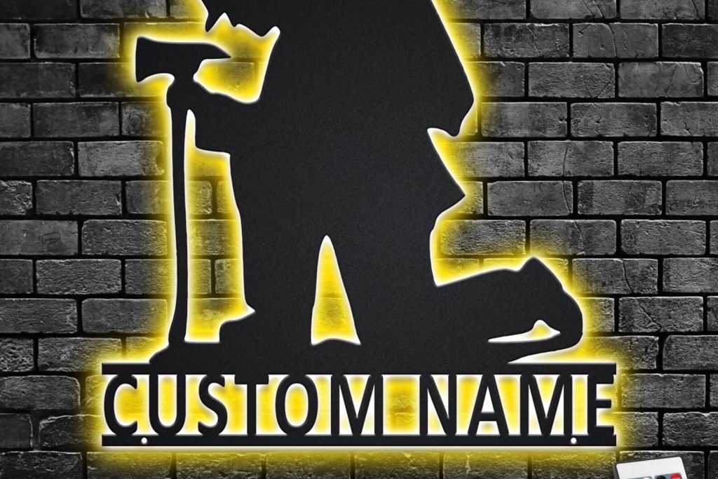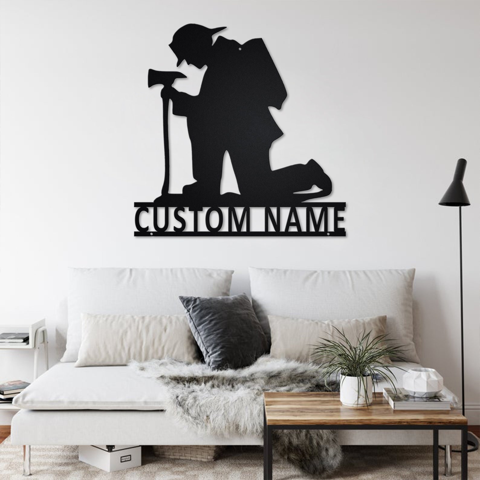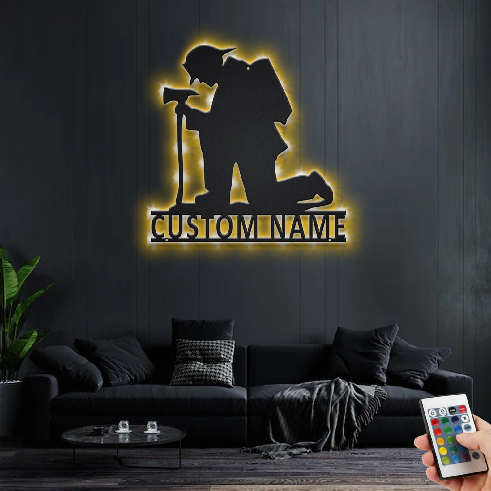 Custom Fireman Kneeling Metal Sign with LED – Room Decoration